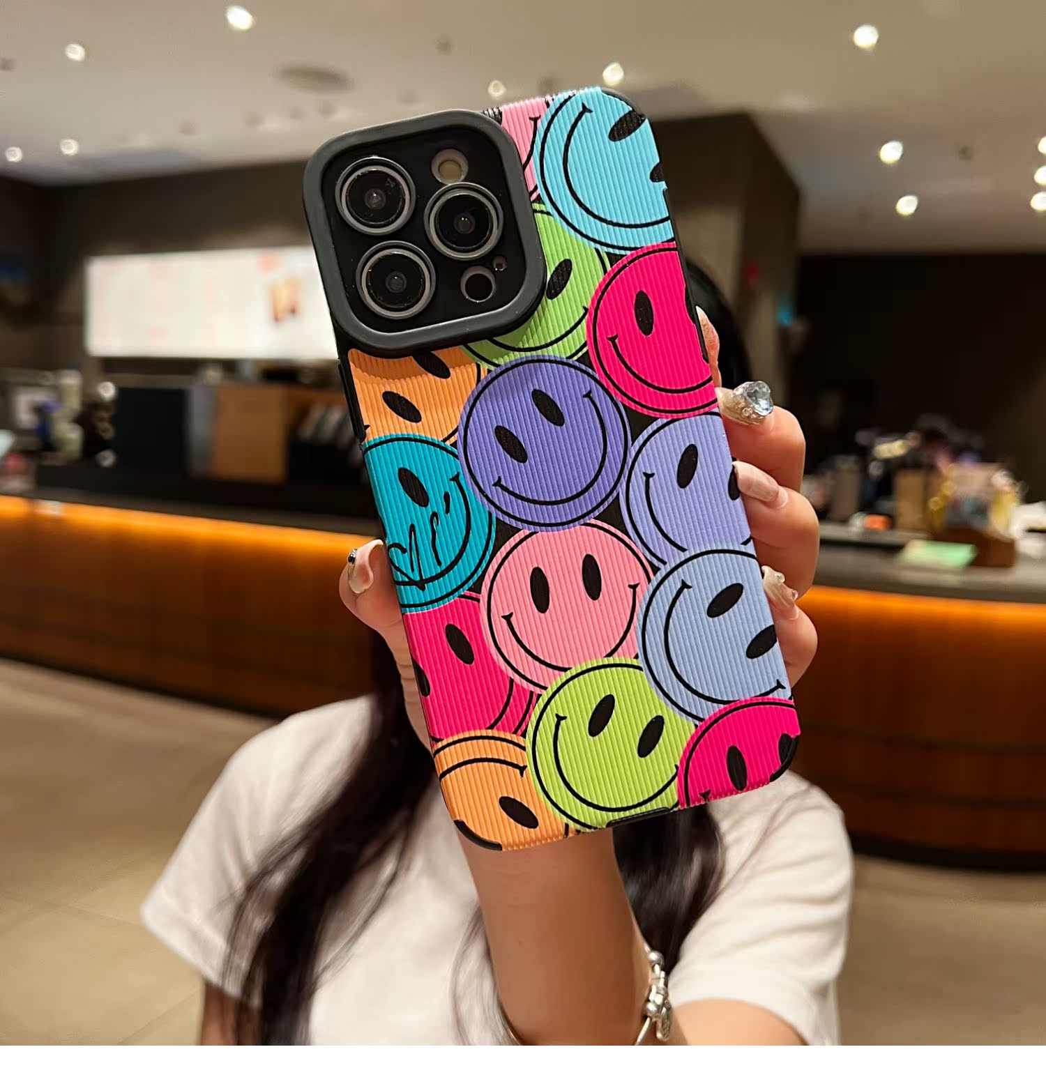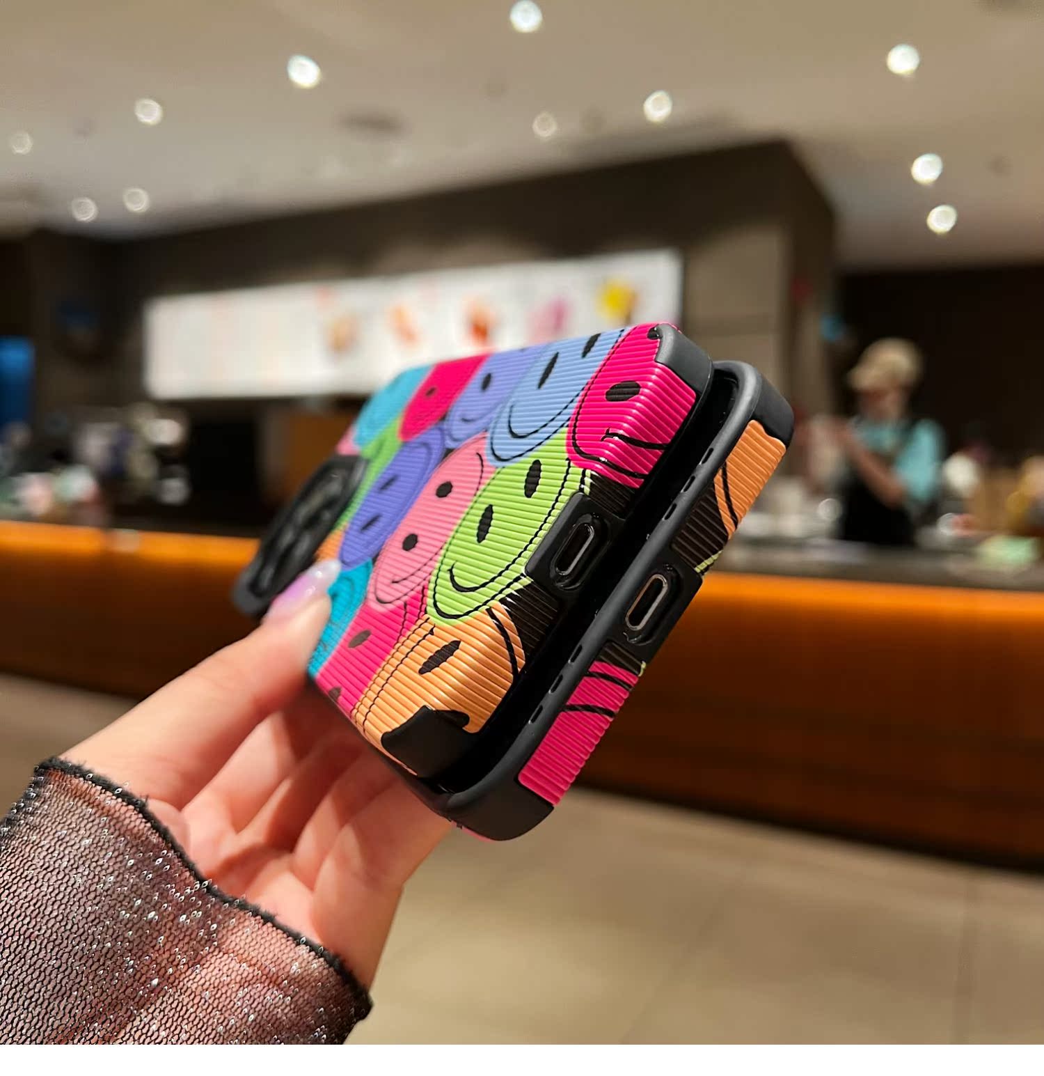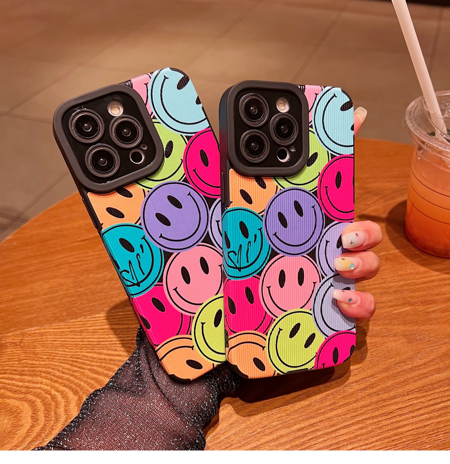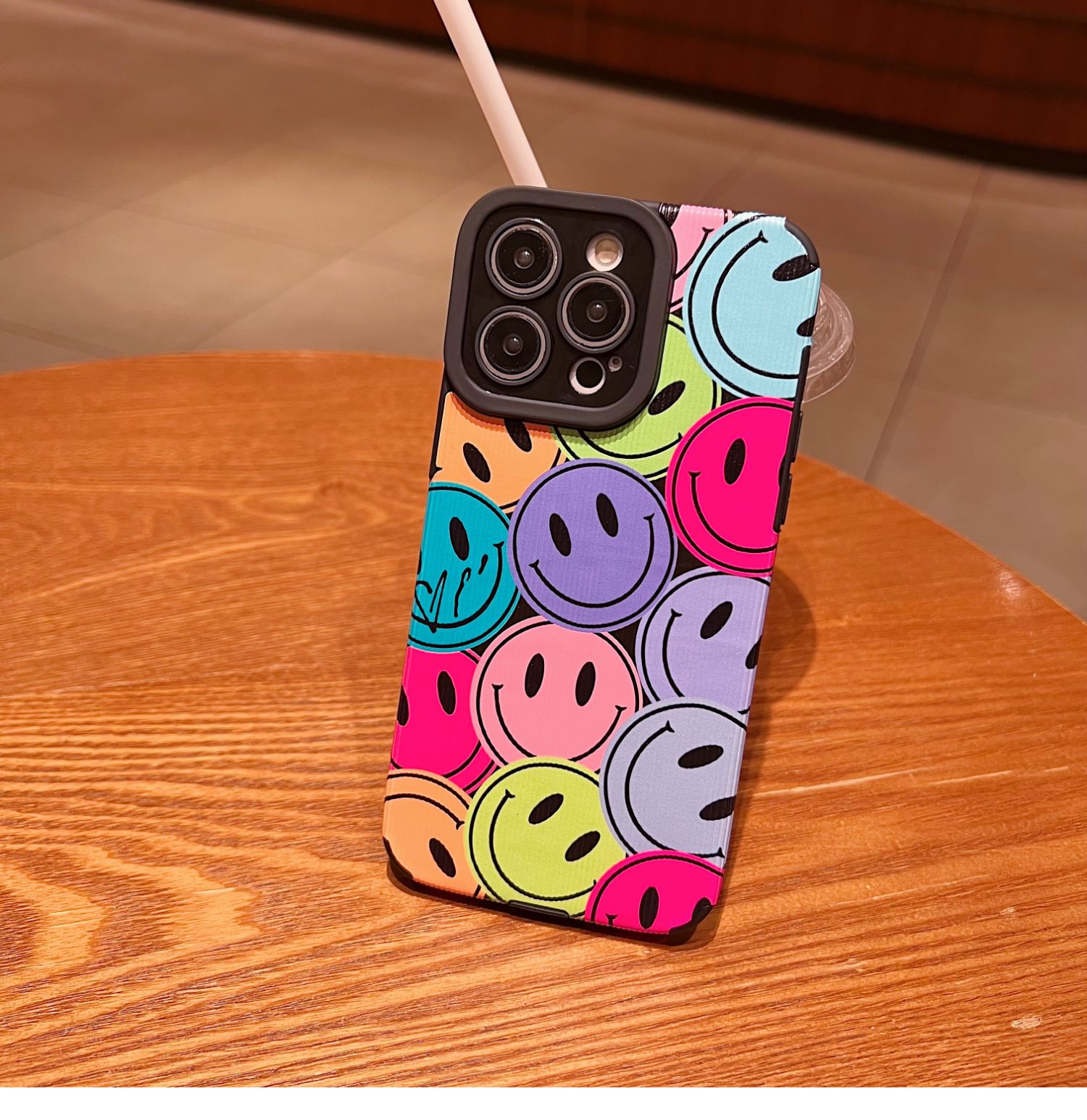 酷圖適用蘋果14promax手機殼新款彩色笑臉iphone14清新ins保護套plus高級感男女簡約13全包防摔11硅膠12皮質
