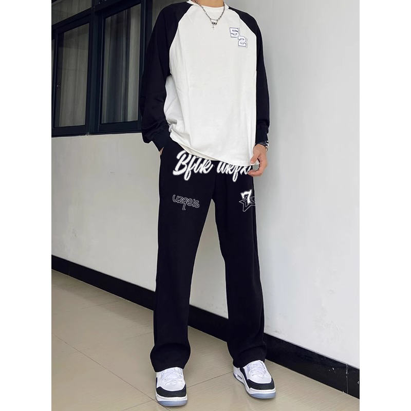 復古重磅寬松束腳褲男高街運動美式直筒褲子小眾痞帥籃球休閑潮牌