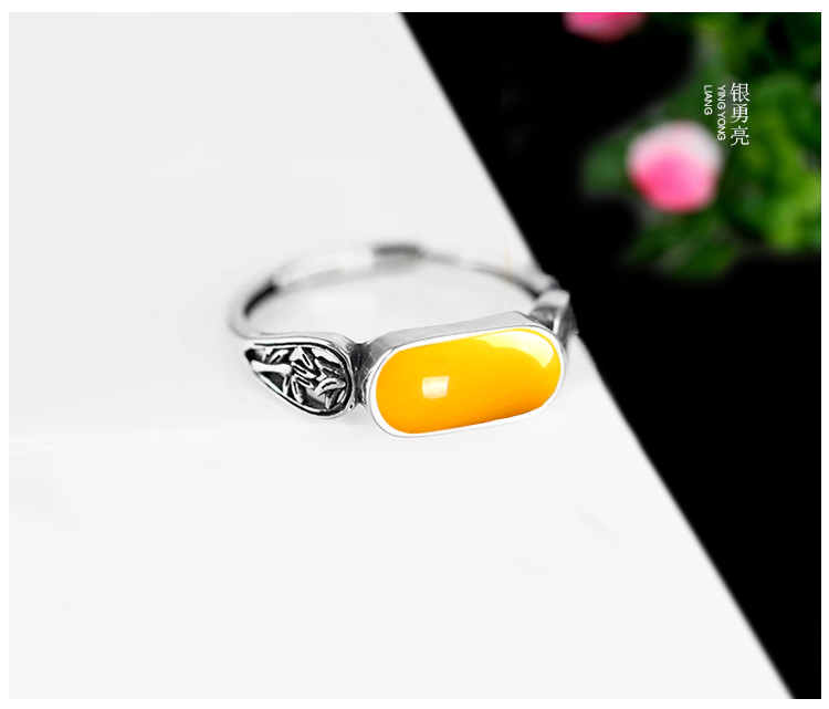 s925空托方形鑲嵌翡翠蜜蠟純銀戒指