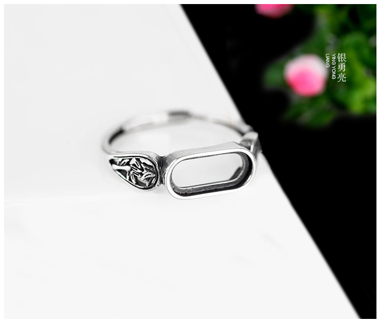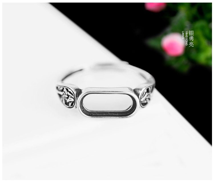 S925純銀男士戒指空托復古diy鑲嵌翡翠玉石綠松石蜜蠟馬鞍托5*11