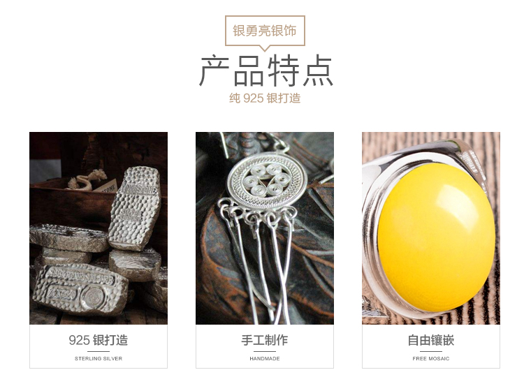 s925純銀戒指空托男鑲嵌翡翠*蜜蠟