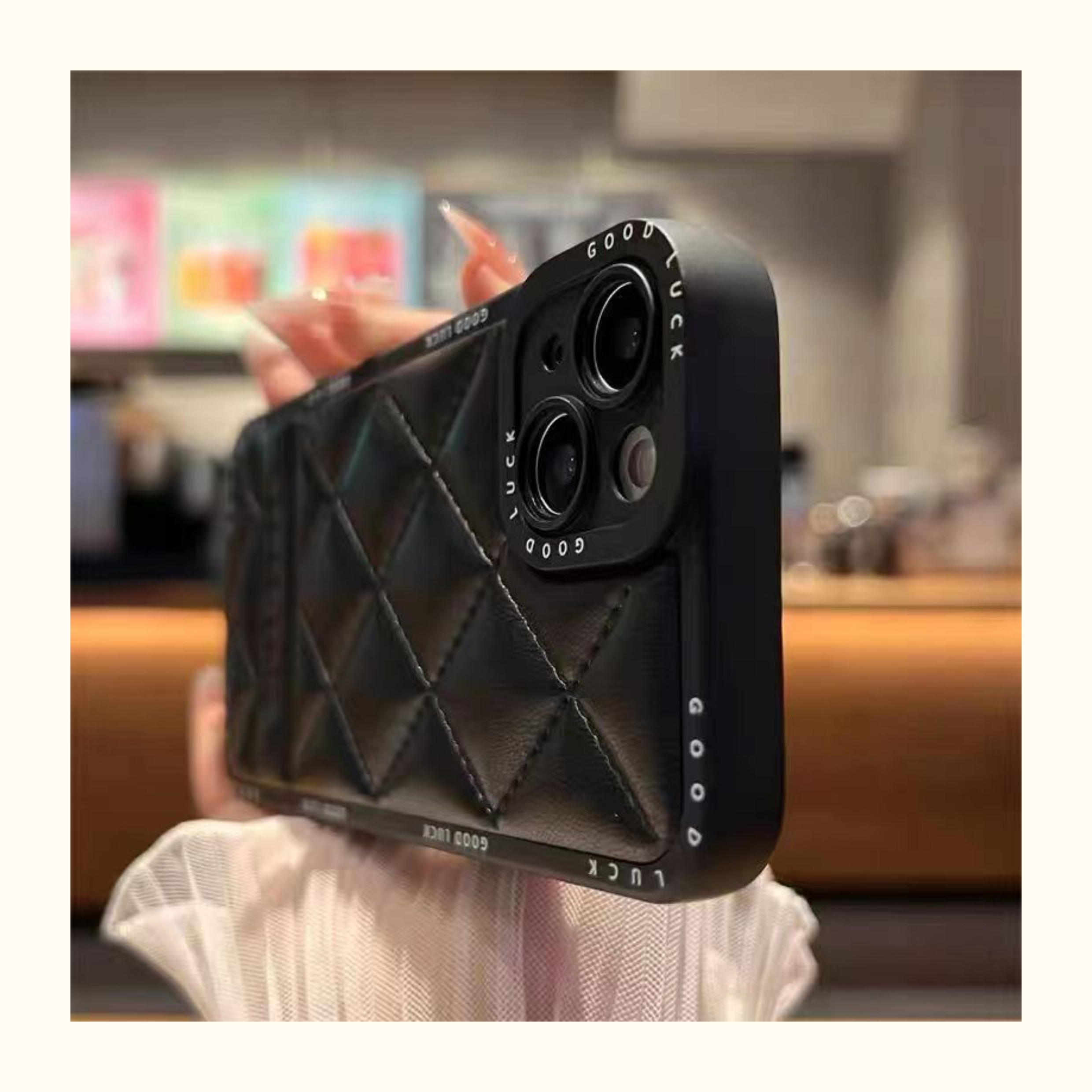 高檔皮質iPhone15手機殼14小香風蘋果13promax潮牌菱格適用12酒紅色全包防摔保護套11黑色華為mate60小眾p40p