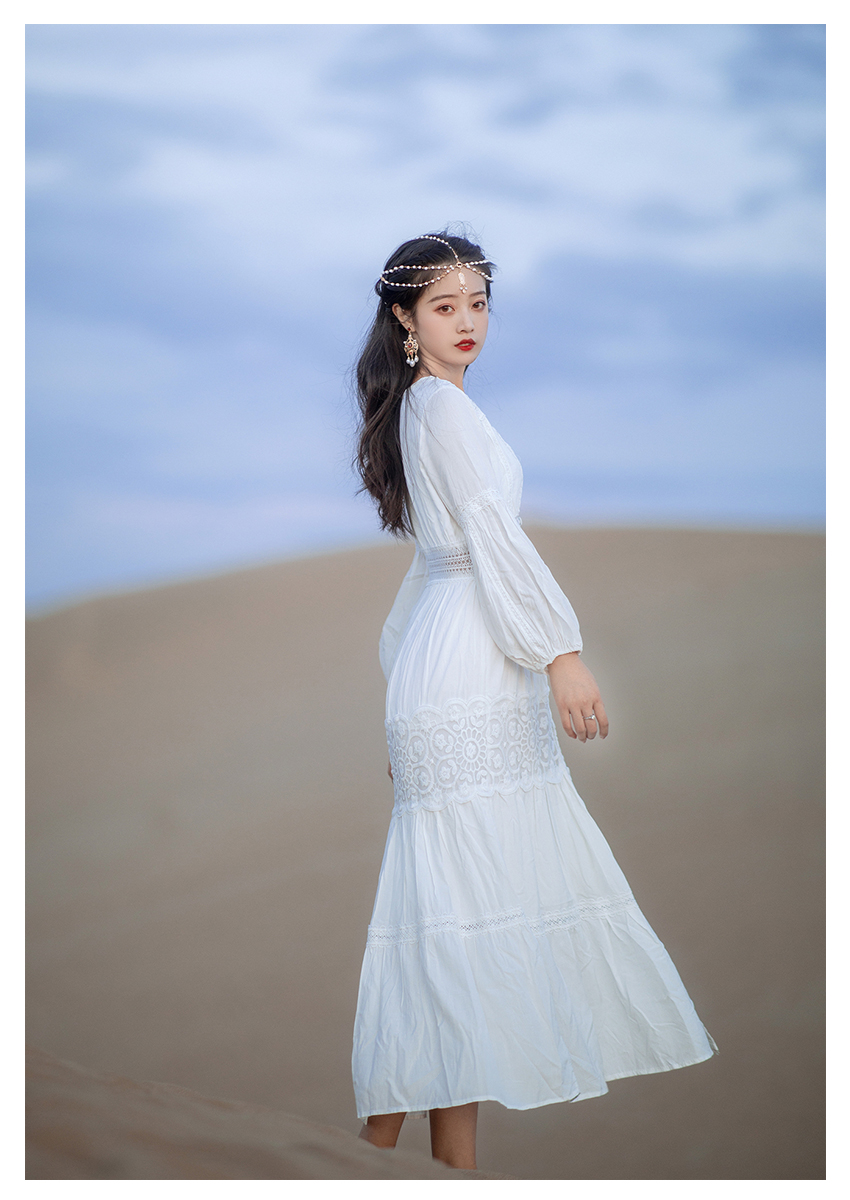 仙女波西米亞連衣裙高級感超好看海邊拍照衣服性感開叉長袖長裙子