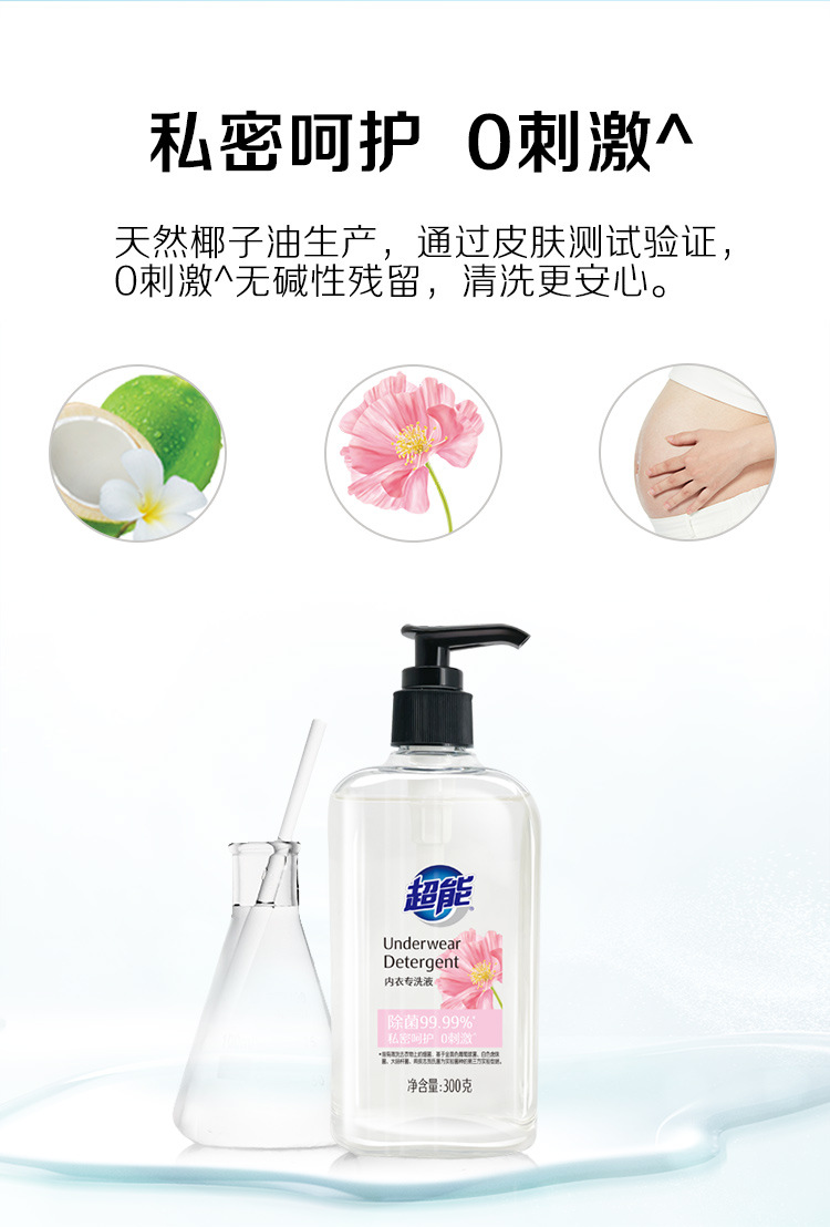 超能內衣內褲洗衣液300g女專用除菌長效抑菌深層去血漬手洗抗菌液