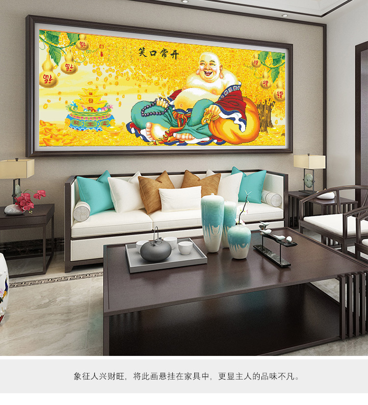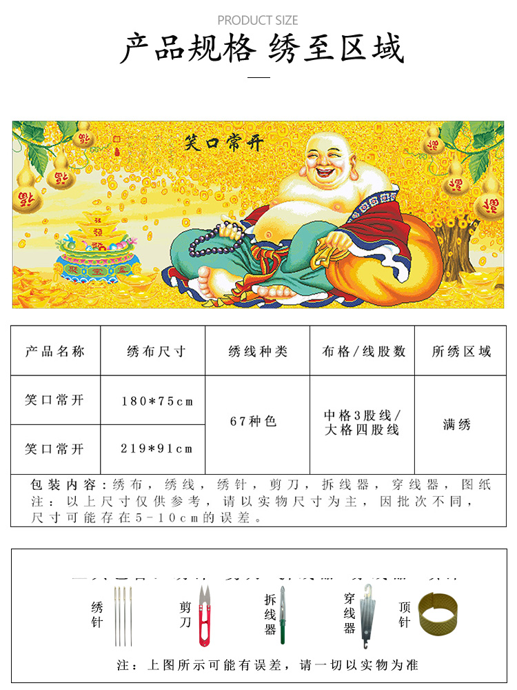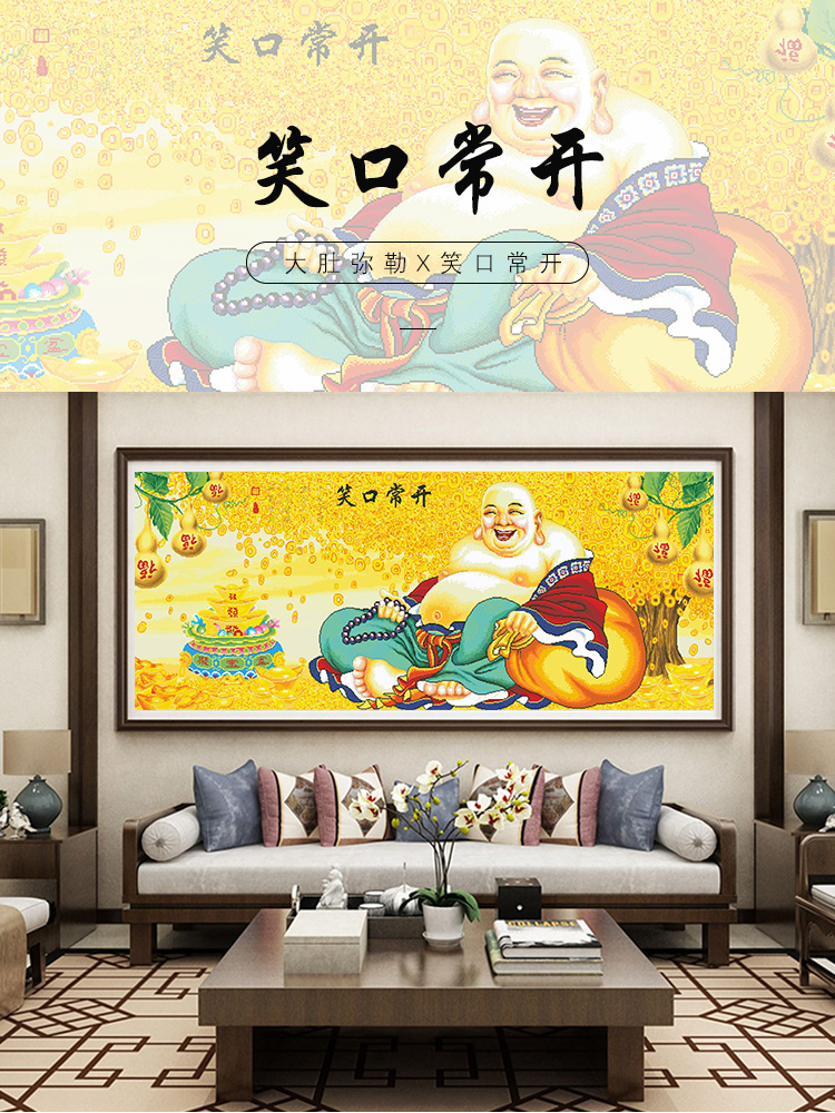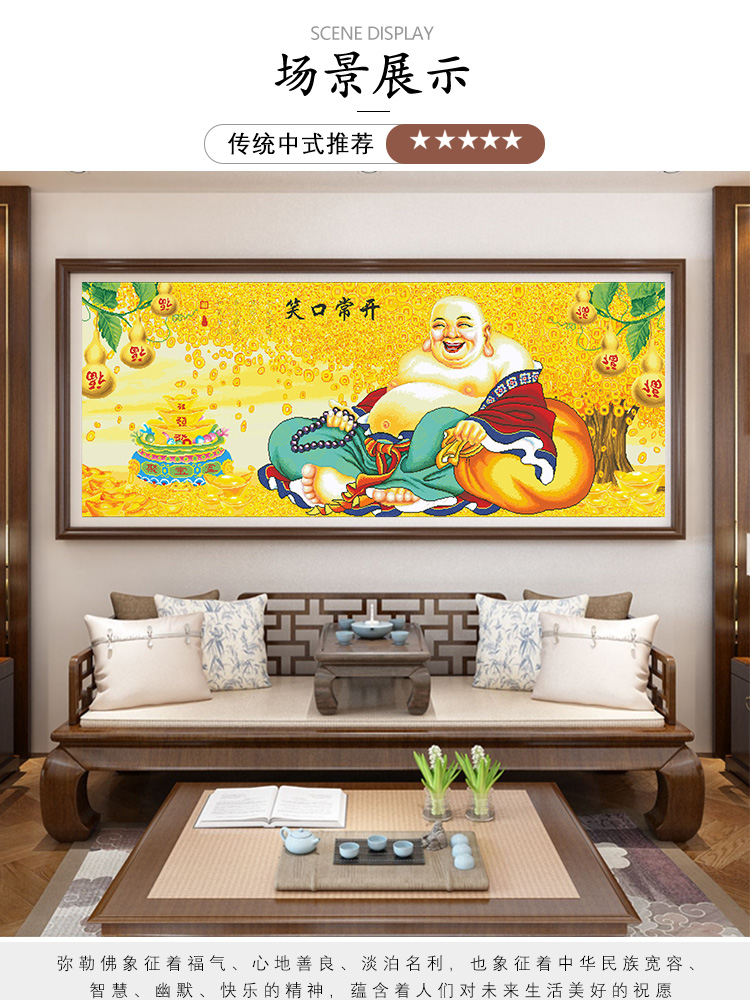 笑口常開十字繡2023新款刺繡客廳手工自繡現代彌勒佛和氣生財大幅