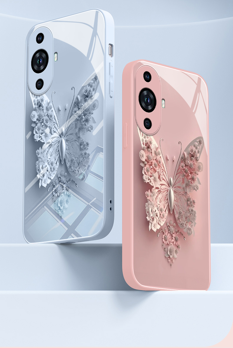 花朵蝴蝶適用華為nova11手機殼女Hi nova10pro粉色玻璃nove9簡約6全包8防摔7se外殼5pro高級感10小眾por網紅