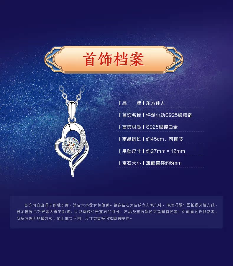 東方佳人999純銀項鏈女款女銀吊墜生日禮物女生女士銀飾2023新款