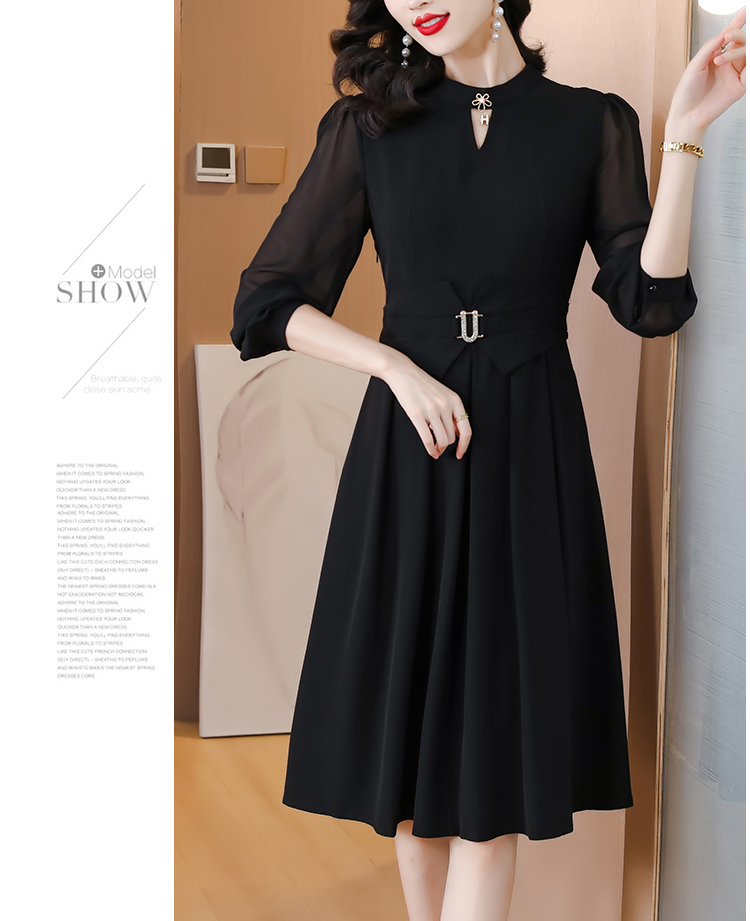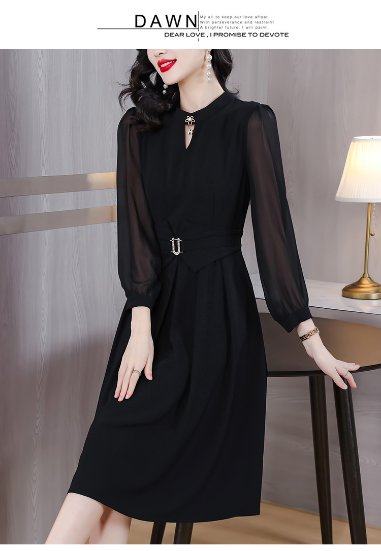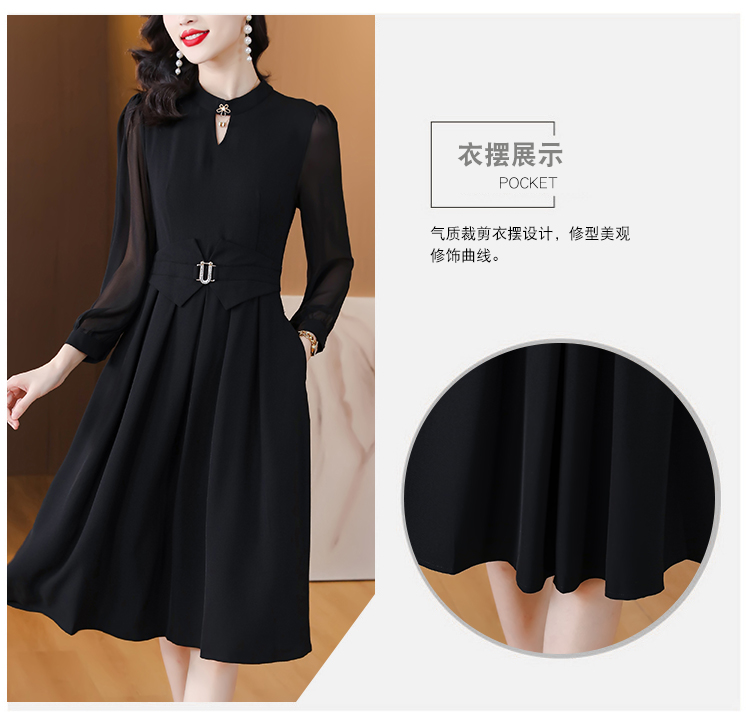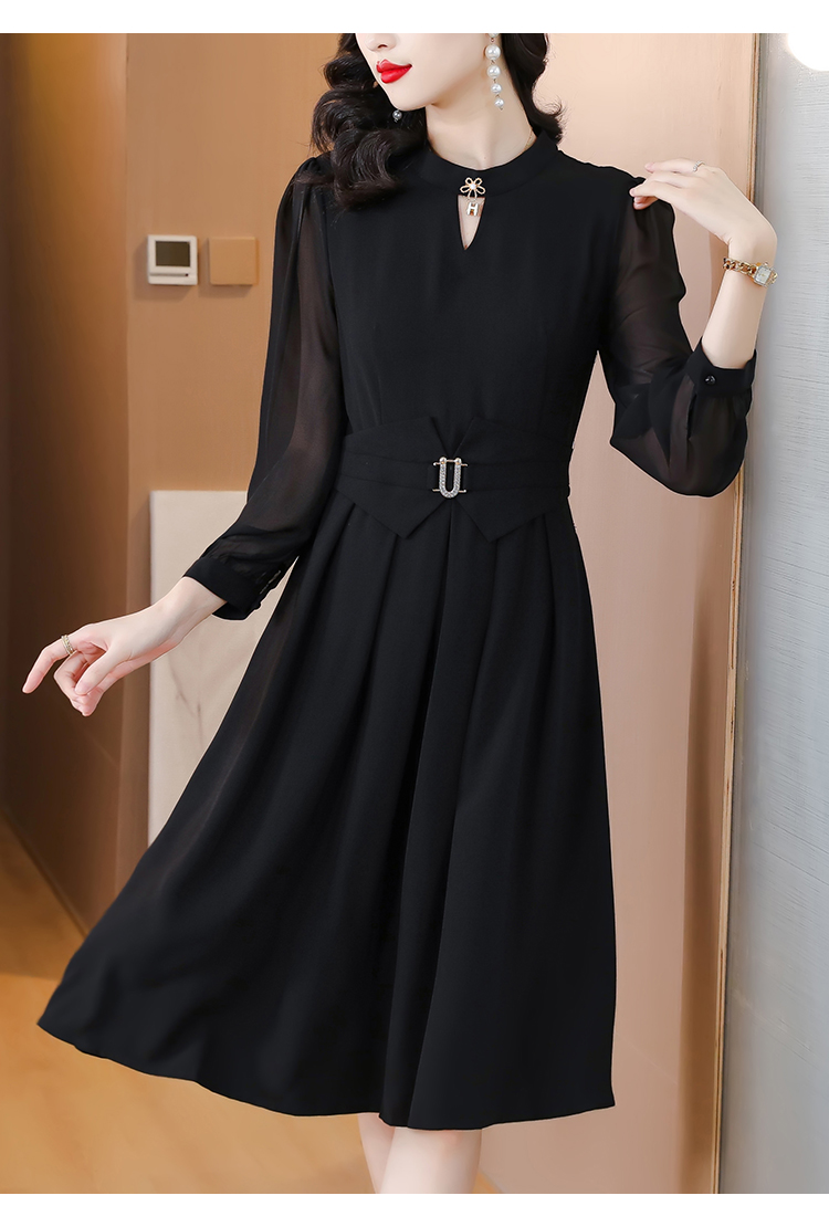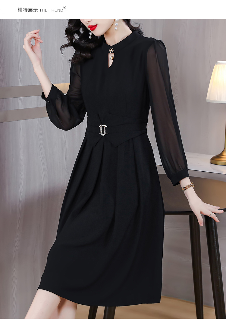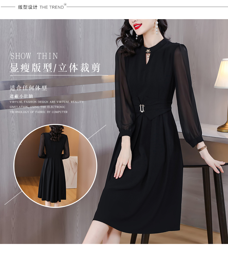 初秋女裝新款連衣裙2023年春秋款長袖高檔黑色高級感秋天中長裙子