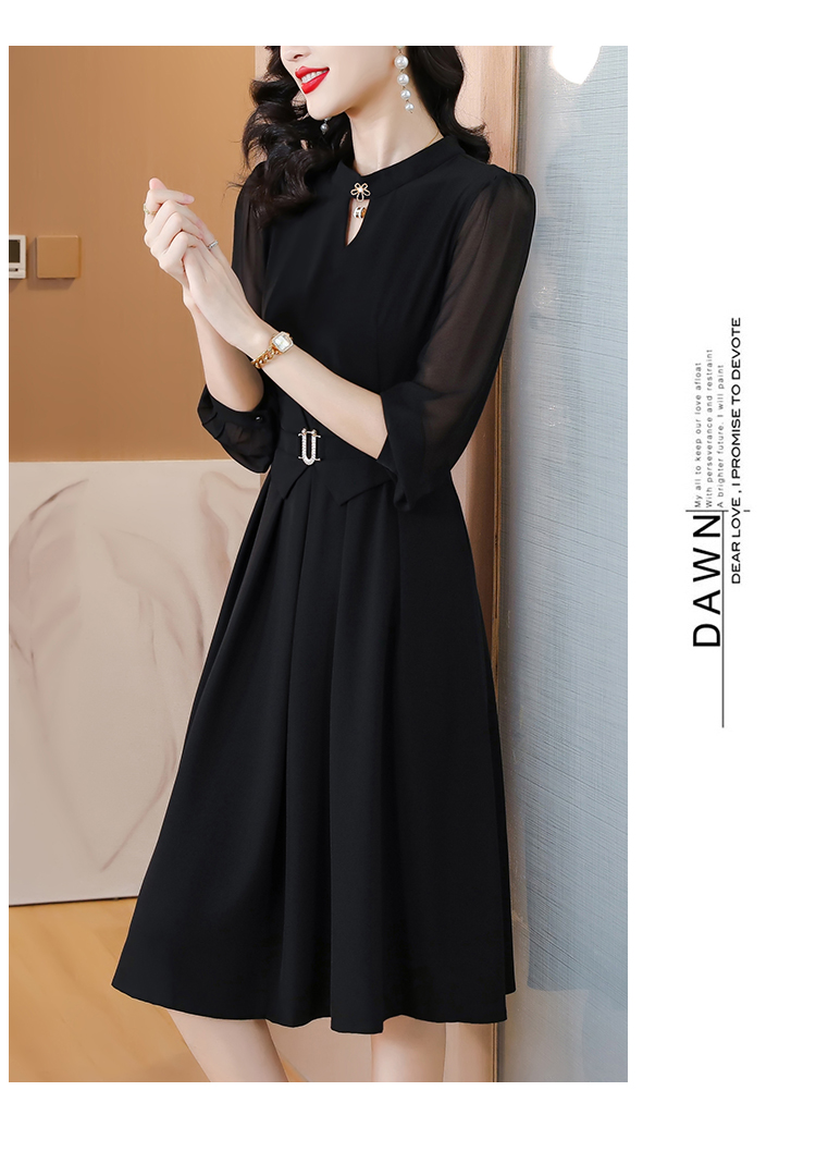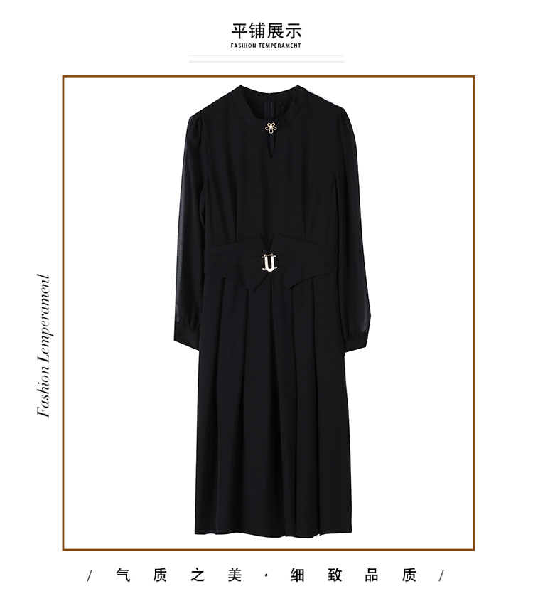 大碼黑色加絨打底氣質中年連衣裙