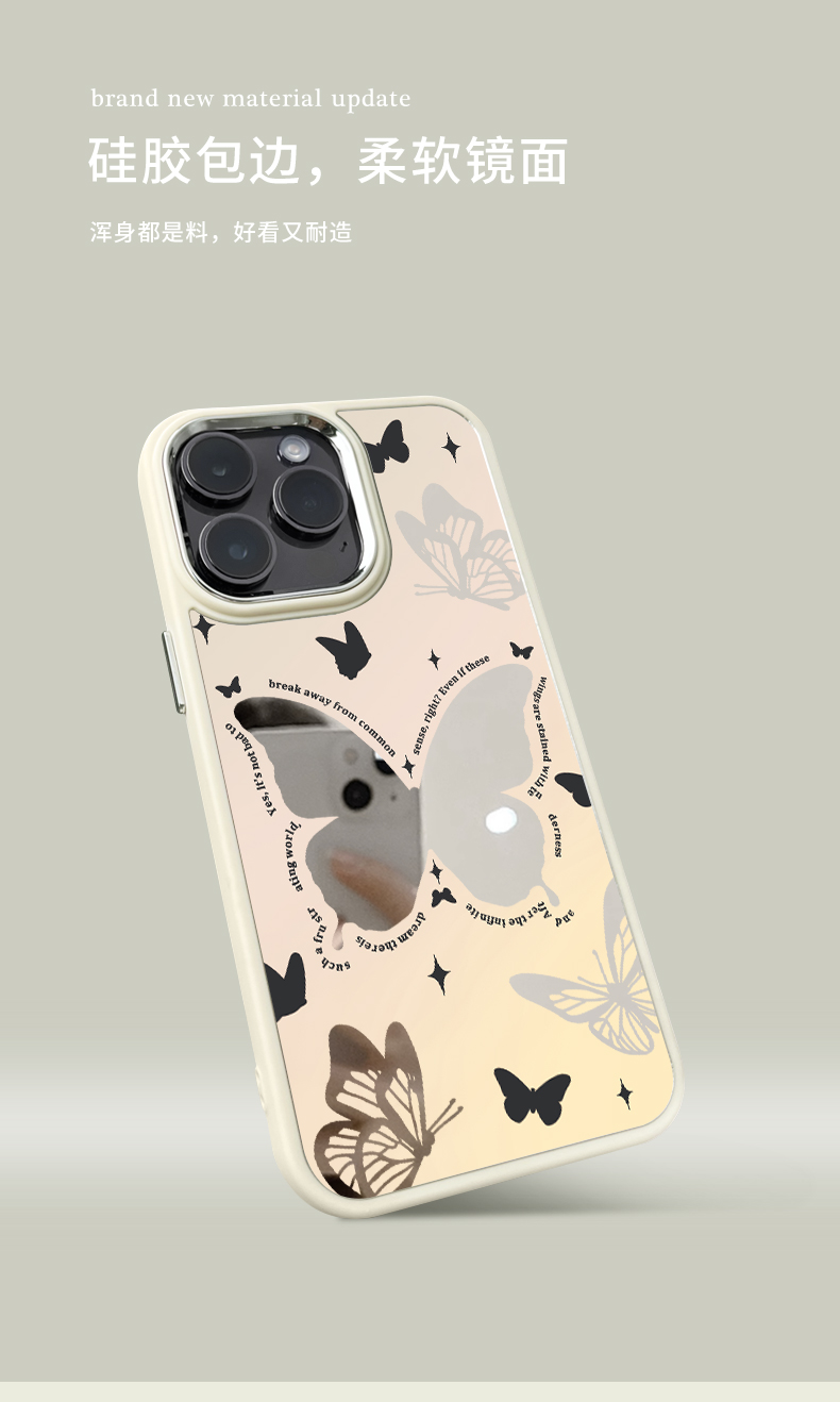 甲方適用于蘋果14promax創意14pro硅膠鏡面殼13蝴蝶剪影小眾11promax簡約12防摔手機殼xsmax個性iPhone13pro