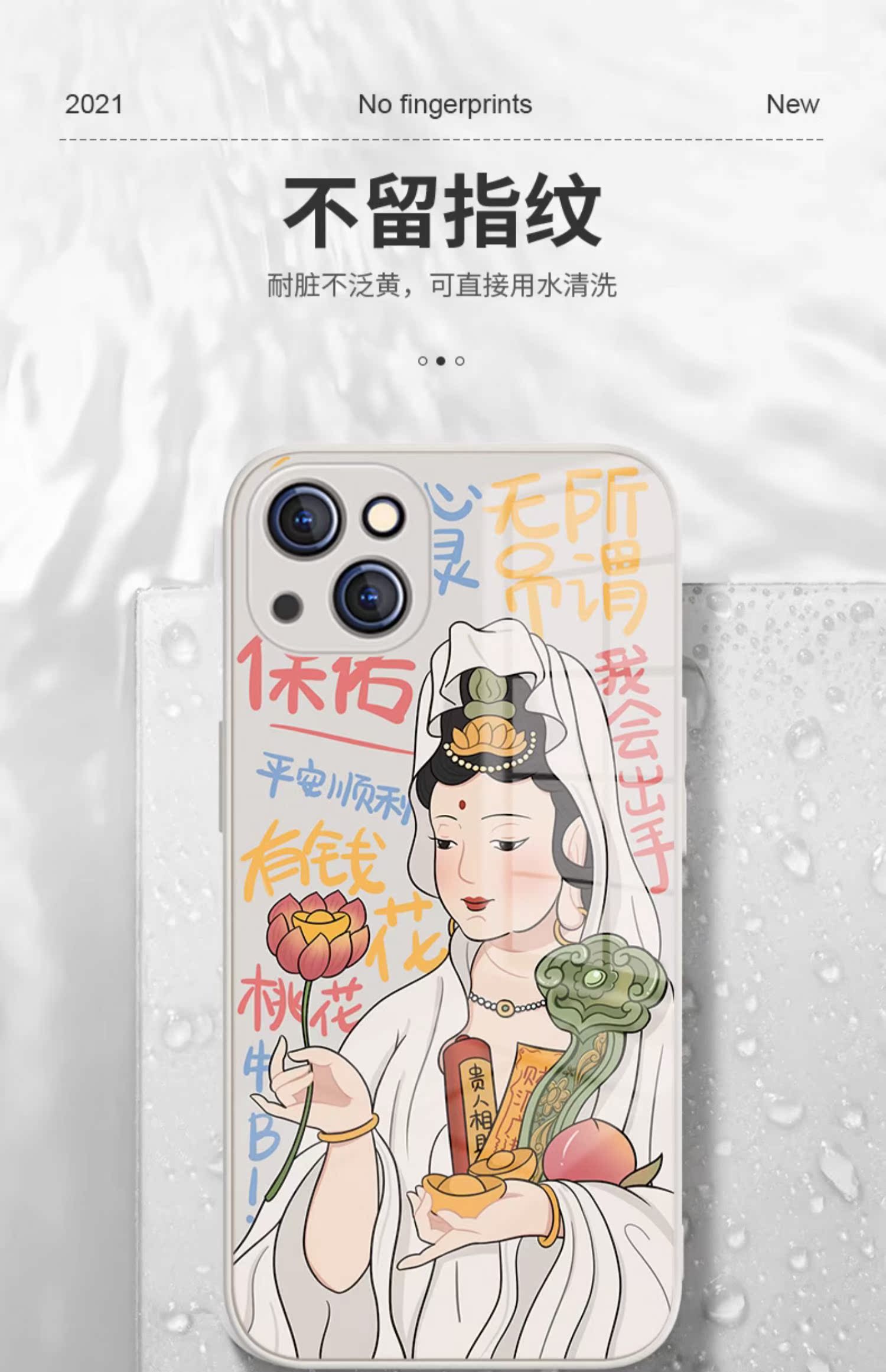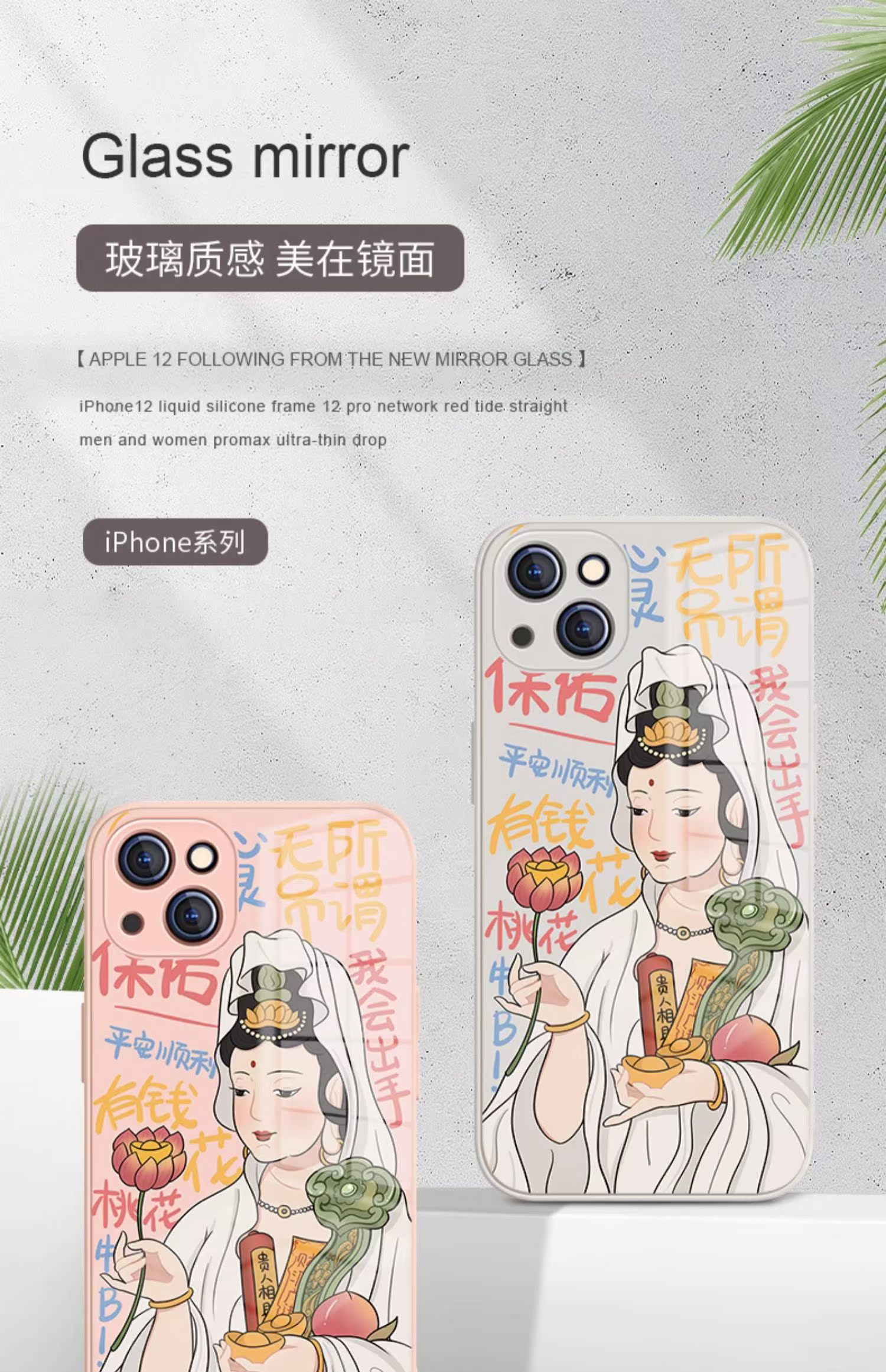 趣味觀音菩薩適用蘋果13Pro手機殼iPhone14promax招桃花ip12搞怪11創意x女款8/7plus高級感xs小眾xr玻璃xsmax