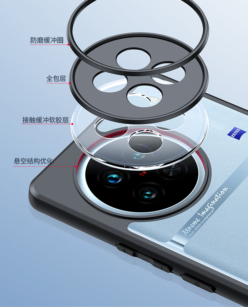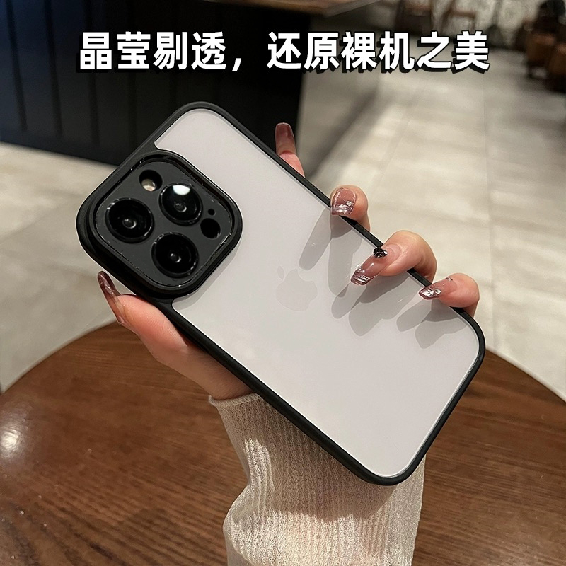 不發黃 適用vivo手機殼X90Pro+全包S17E新款S16亞克力iQOO11高透明Neo8磨砂ins膚感黑色邊簡約女款防摔硬男潮