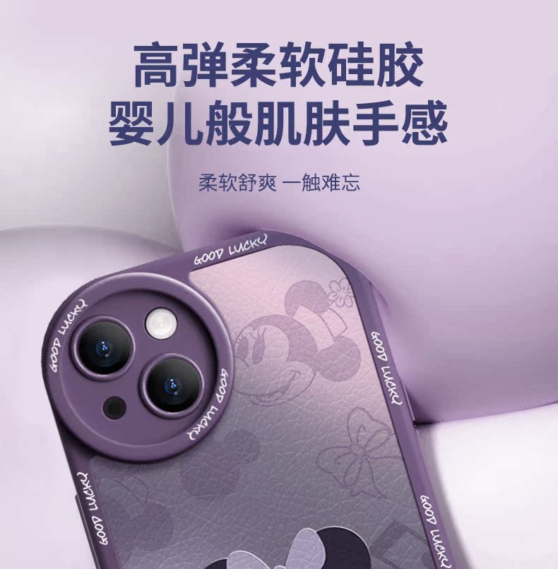迪士尼適用蘋果14promax手機殼iphone14pro新款13簡約12紫色11全包防摔硅膠xr高級女ip保護套pm外殼por網紅x