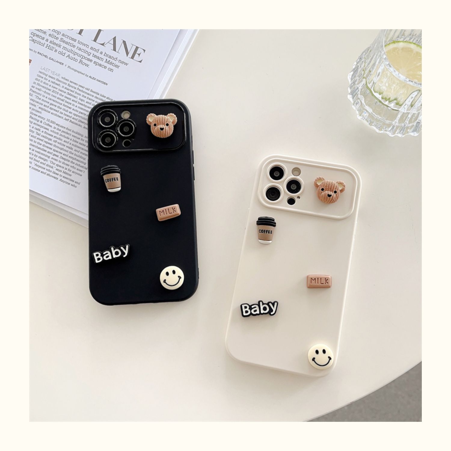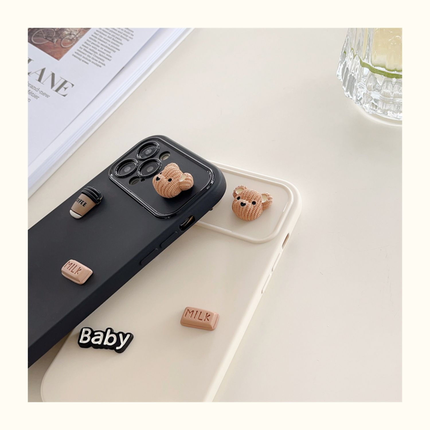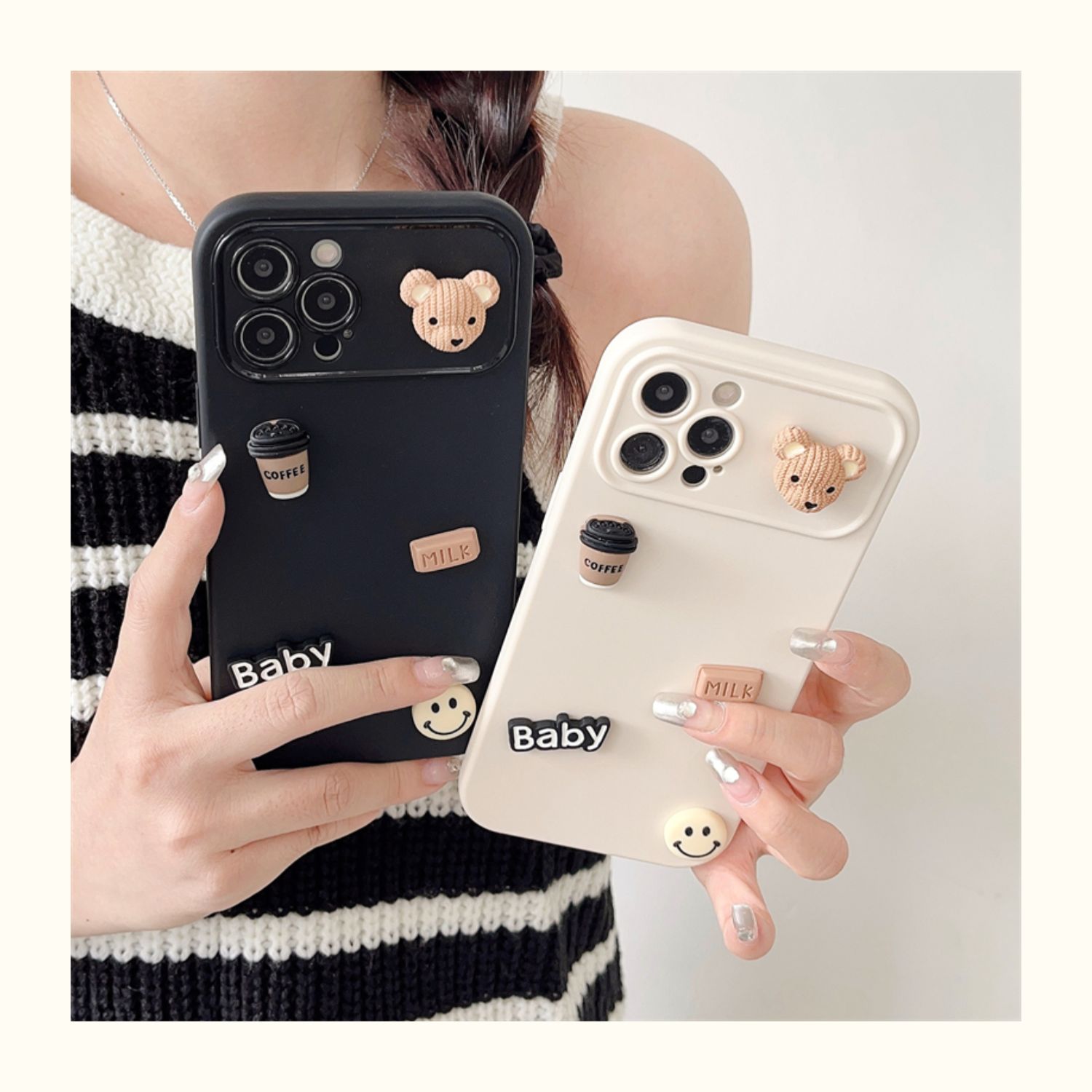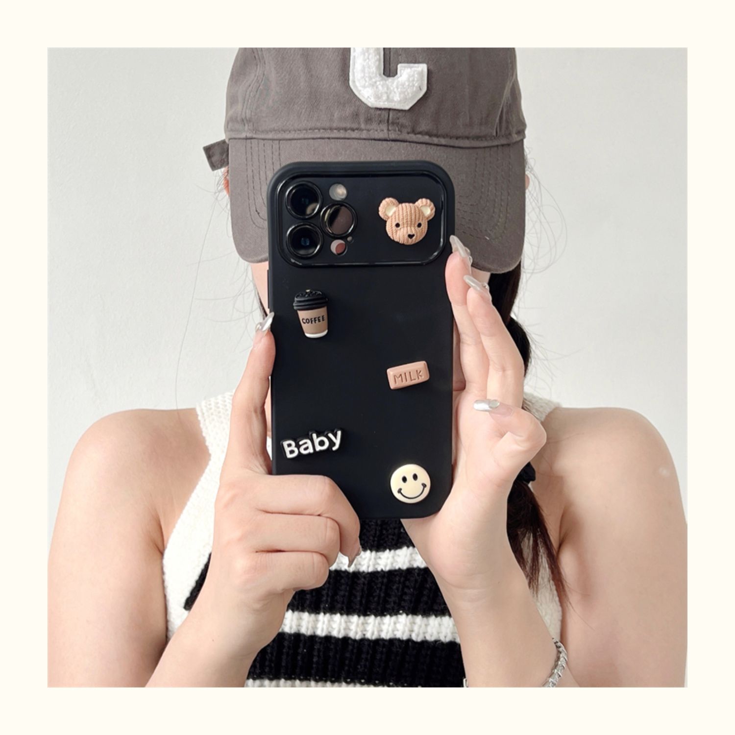 立體卡通咖啡小熊適用蘋果15promax手機殼14磨砂大視窗13新款硅膠全包防摔