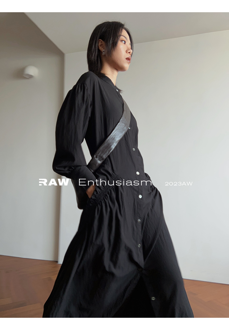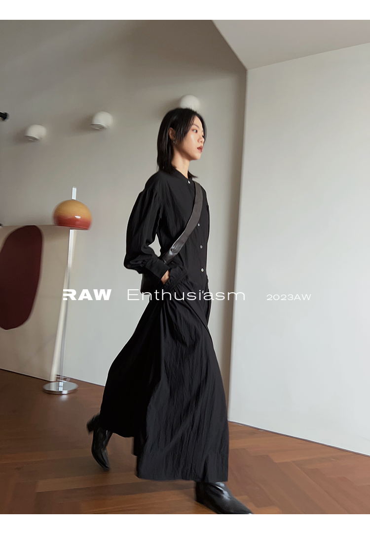 比如這件黑色襯衫裙里的組合,