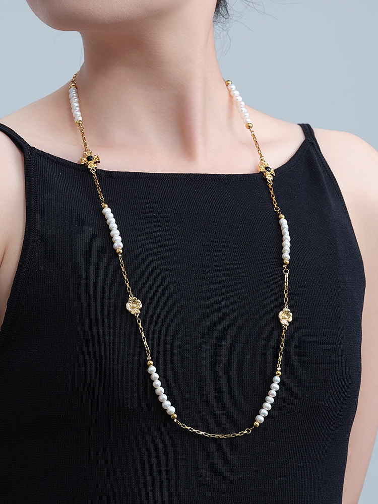 原創{朵啦皇后}淡水珍珠項鏈高級感長款毛衣鏈大氣高檔配飾女夏季