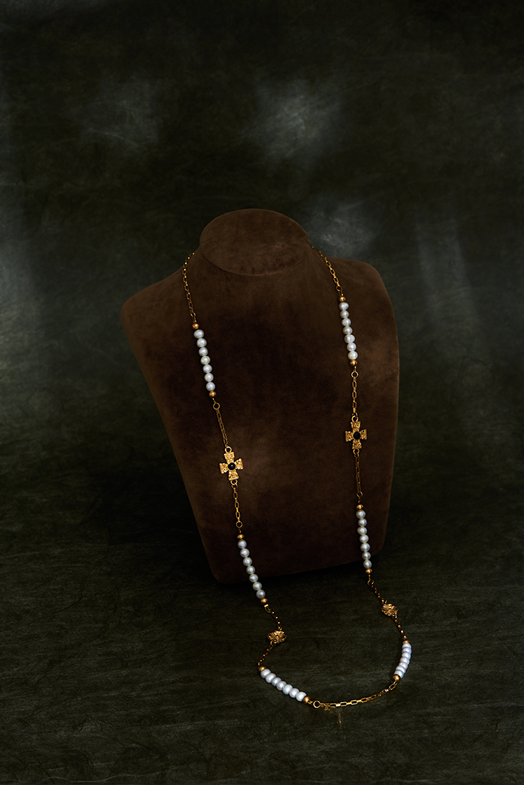 原創{圣花守護}淡水珍珠項鏈十字架長款高級感毛衣鏈大氣高檔女款
