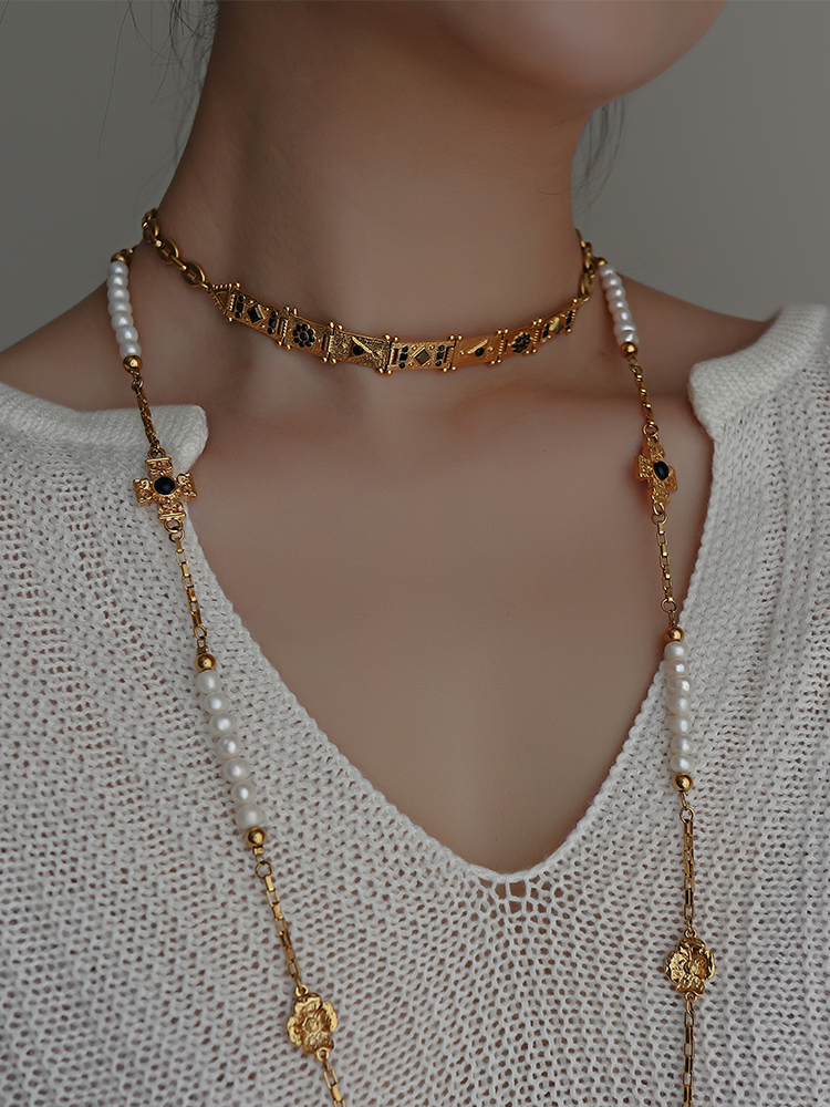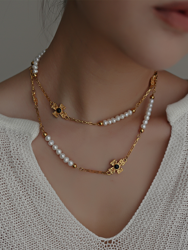 原創愛與救贖法式獨特十字架金屬拼接珍珠項鏈女輕奢高級感鎖骨鏈