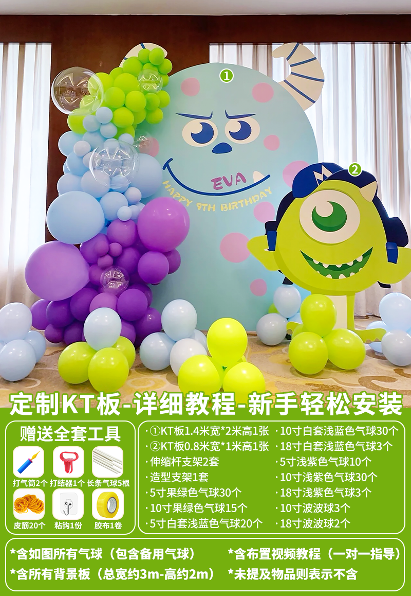 寶寶2周歲兒童生日氛圍布置男女孩小怪獸主題派對氣球裝飾背景墻