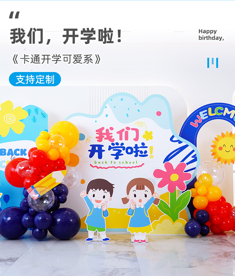 開學典禮kt板背景定制小學初中幼兒園氣球裝飾場景展板我們開學啦