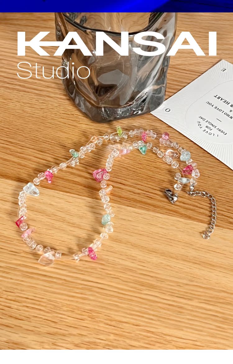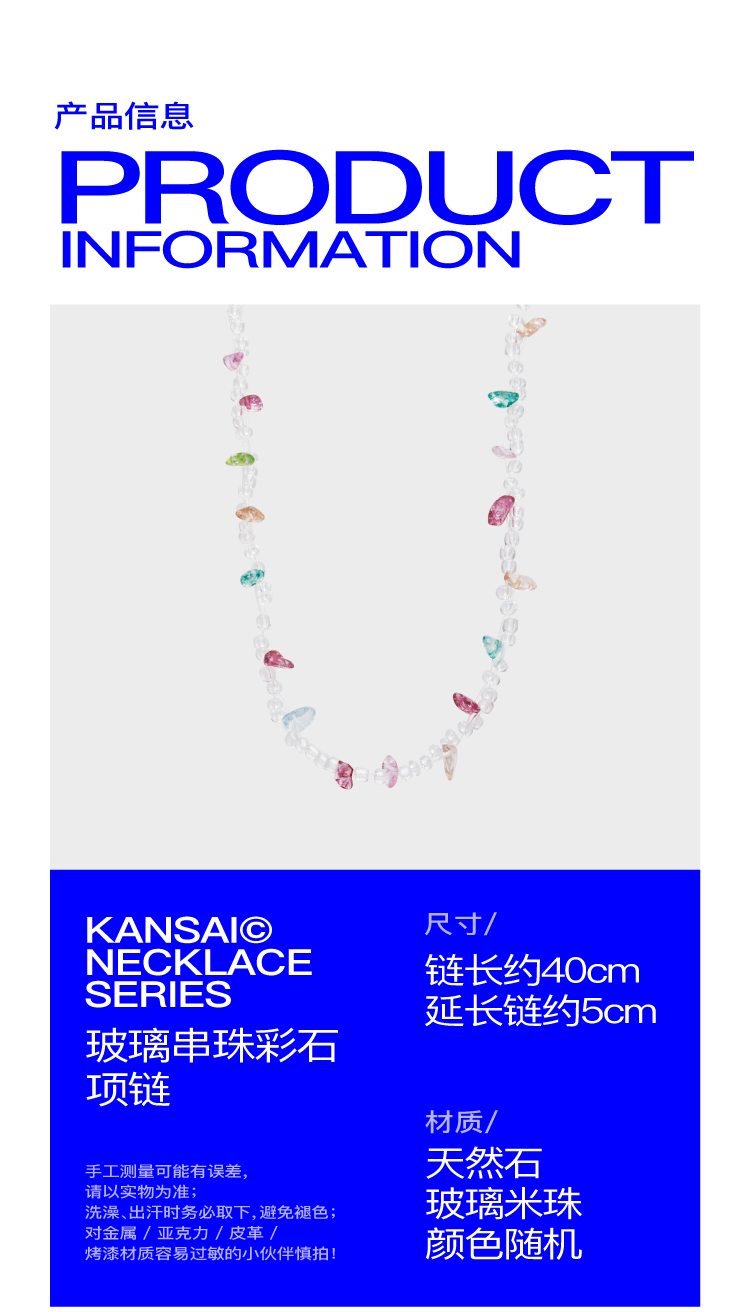 KANSAI玻璃彩色串珠項鏈女2023新款爆款小眾甜酷多巴胺頸鏈鎖骨鏈