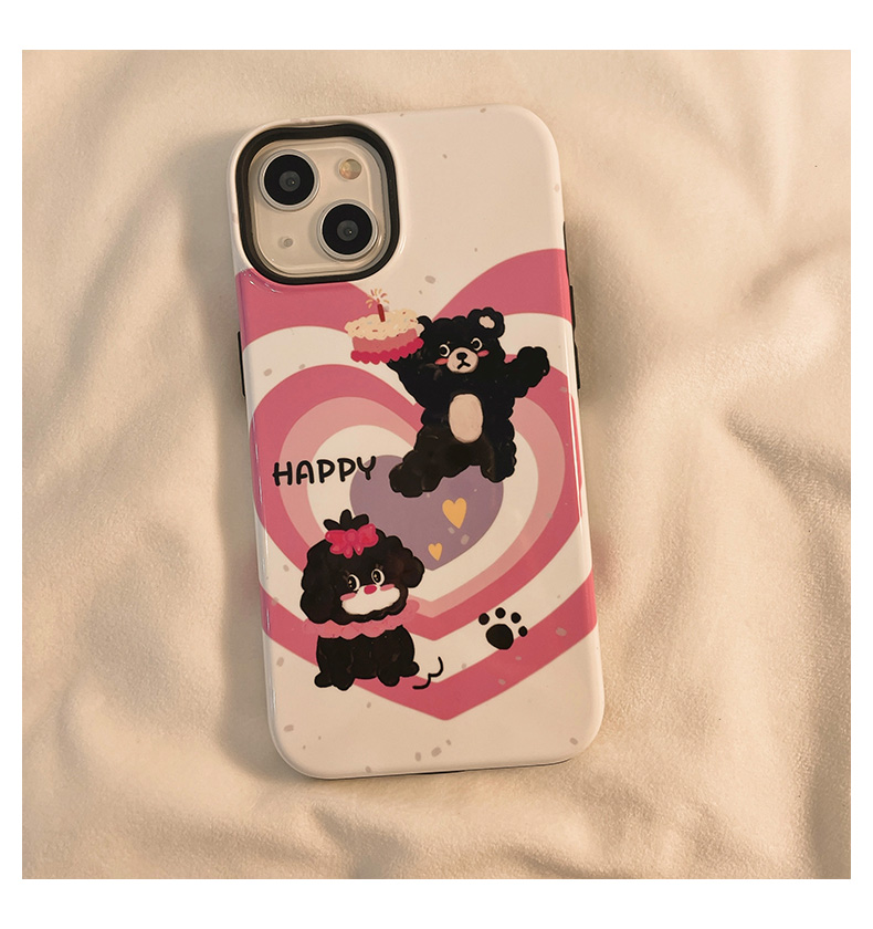 獨殼 卡通可愛小熊小狗愛心適用蘋果14ProMax手機殼二合一iphone13新款12硅膠14pro女11全包13pro防摔保護套