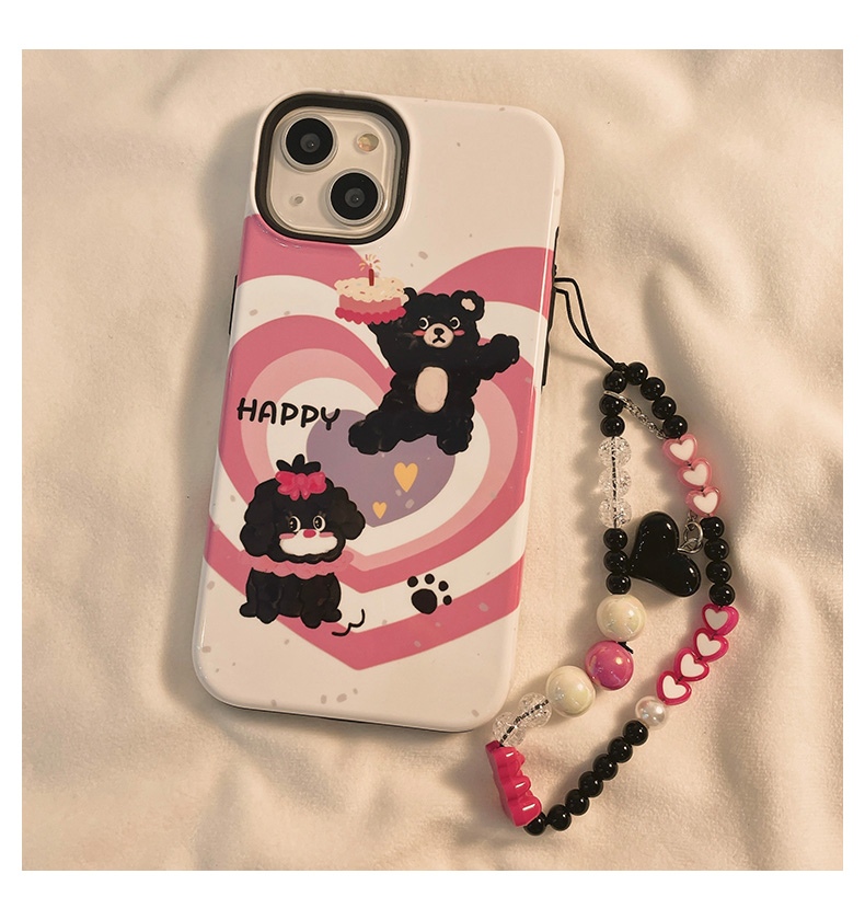 日韓ins卡通愛心小熊狗狗適用蘋果iphone14手機殼13pro掛鏈12promax二合一11網紅可愛max小眾高級感保護套潮