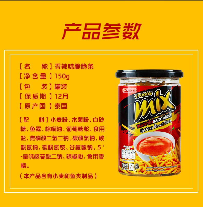 脆脆條罐裝泰國進口vfoods mix原味香辣咪咪蝦條膨化薯條150g*3桶