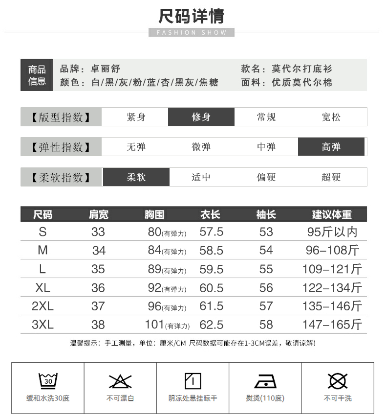 莫代爾春秋修身面膜t恤秋衣打底衫