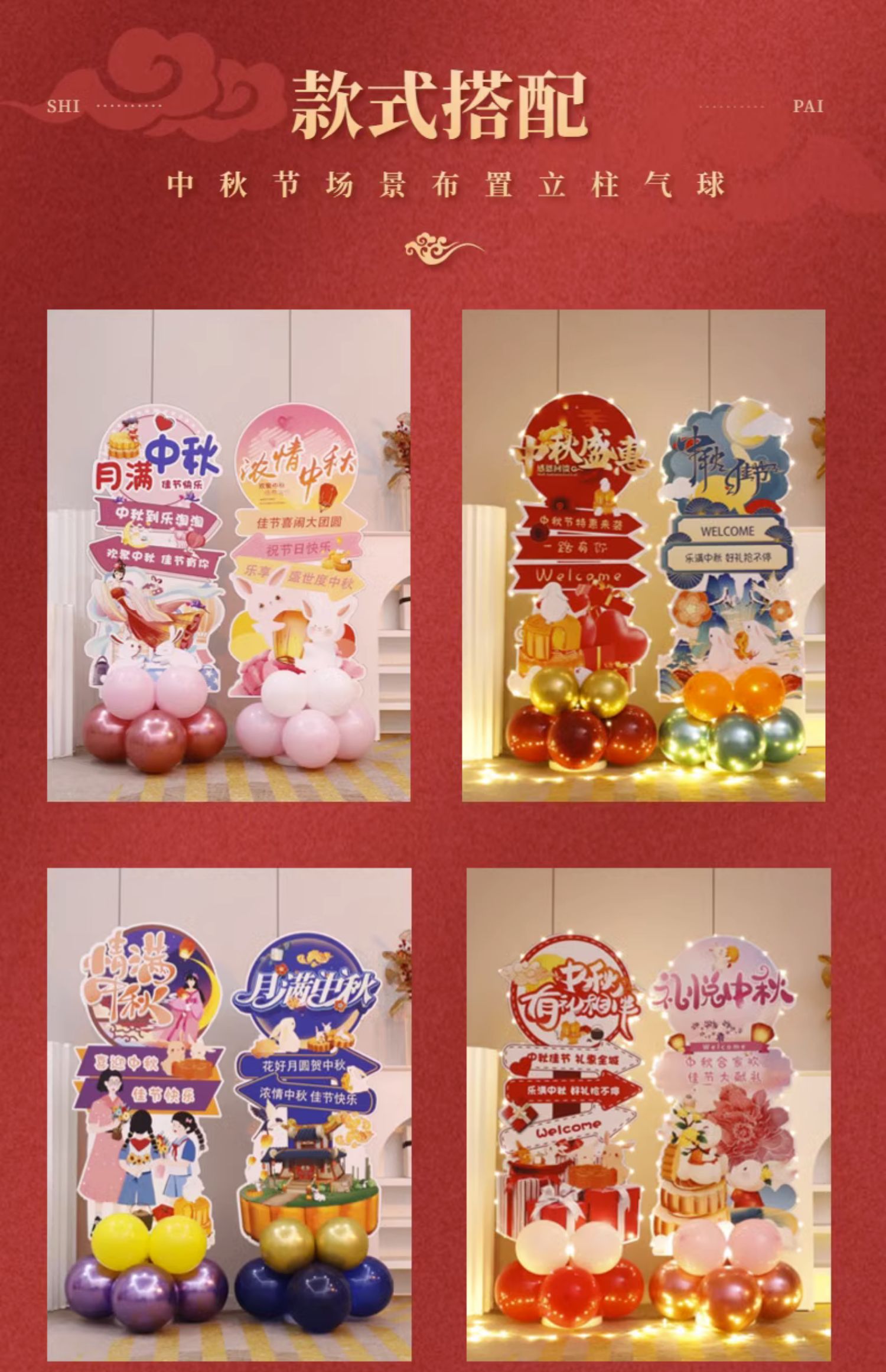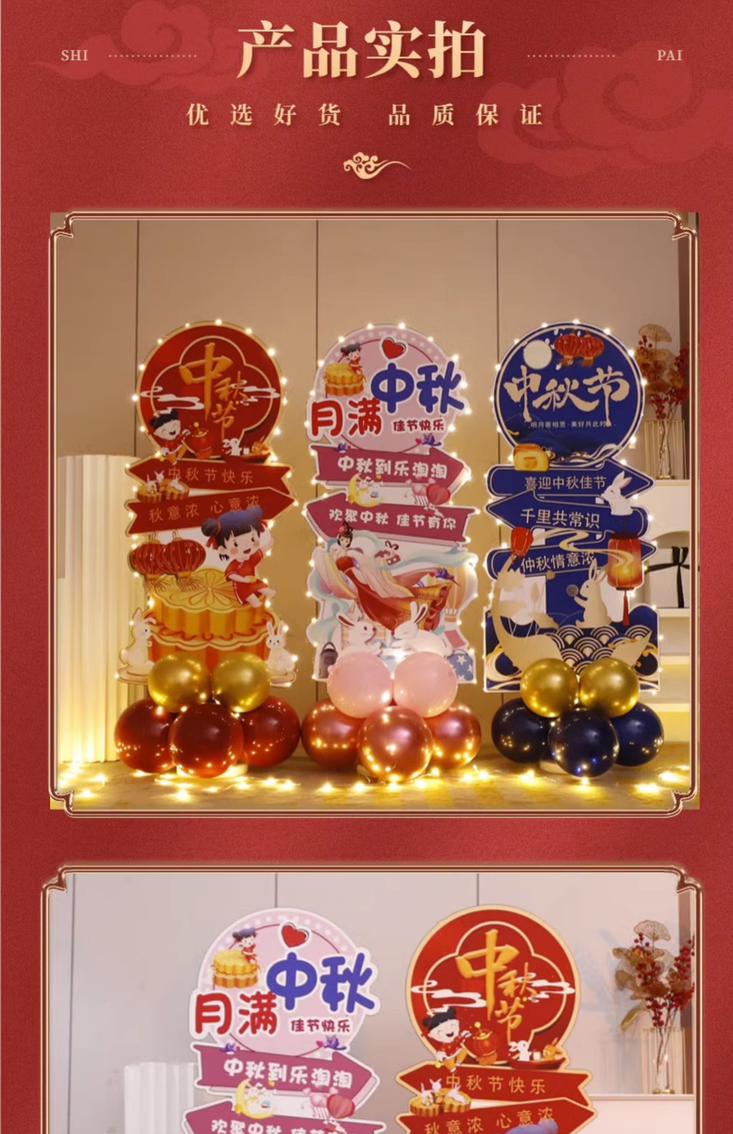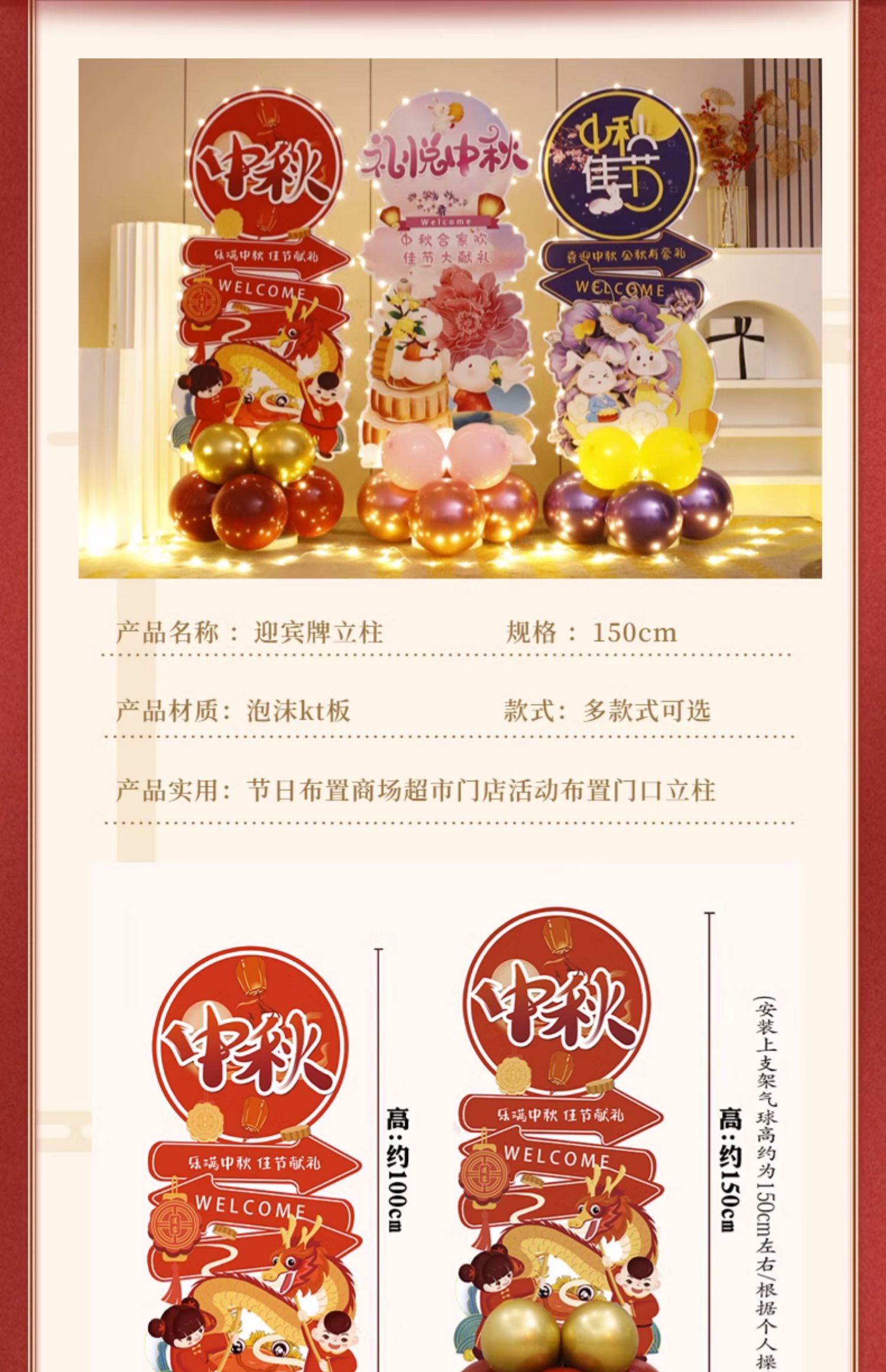 中秋節店鋪裝飾氣球立柱氛圍布置商場店鋪門口迎賓牌氛圍布置kt板