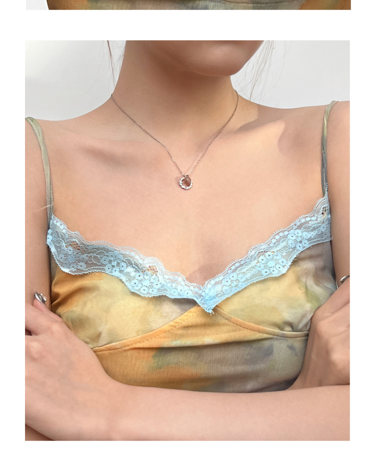KANSAI粉色花朵鋯石項鏈女輕奢小眾配飾2023新款爆款高級感鎖骨鏈