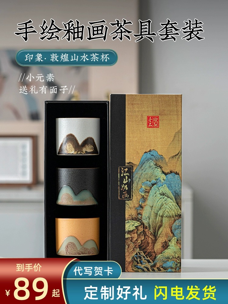 中秋節送長輩伴手禮物送禮高檔定制賀卡小實用高端的山水茶杯禮盒