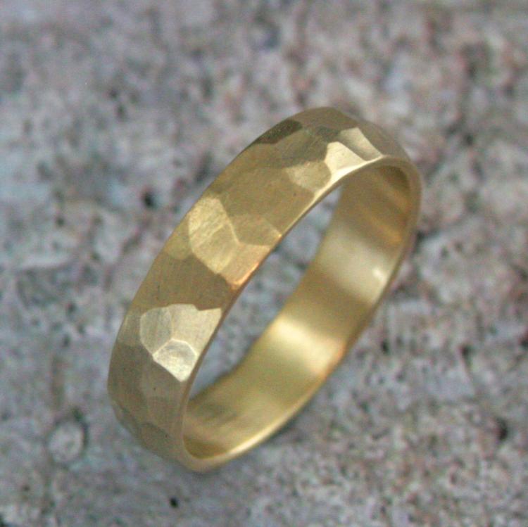 美國代購Hammered◇手作復古錘擊紋理5mm實心14K金結婚指環戒指