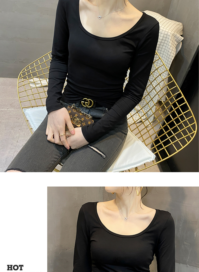 莫代爾黑色低領打底衫女秋冬洋氣內搭薄款U領長袖t恤修身面膜上衣