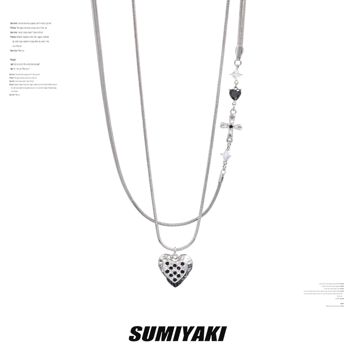SUMIYAKI 原創高級感黑紫鋯石y2k雙層項鏈女鎖骨鏈輕奢鋯石項鏈
