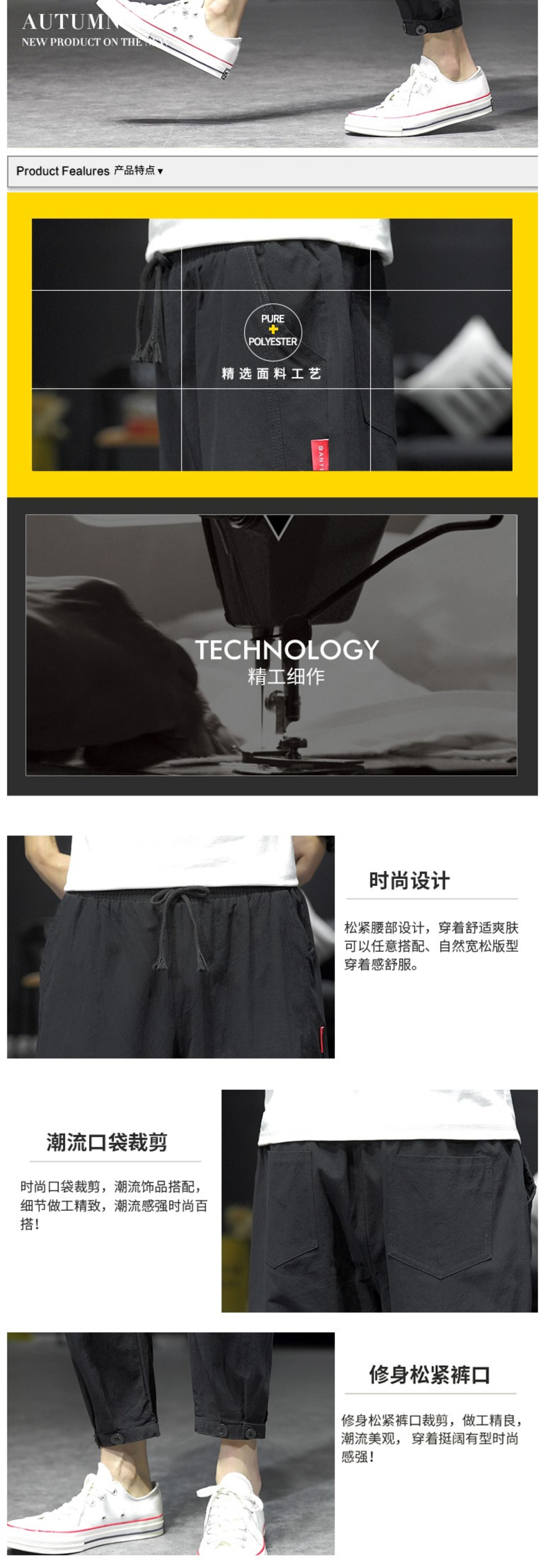 真維斯戶外運動休閑褲男士春秋新款寬松束腳九分褲潮牌薄款長褲五