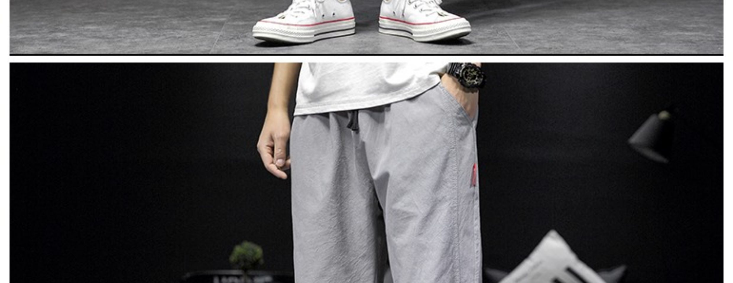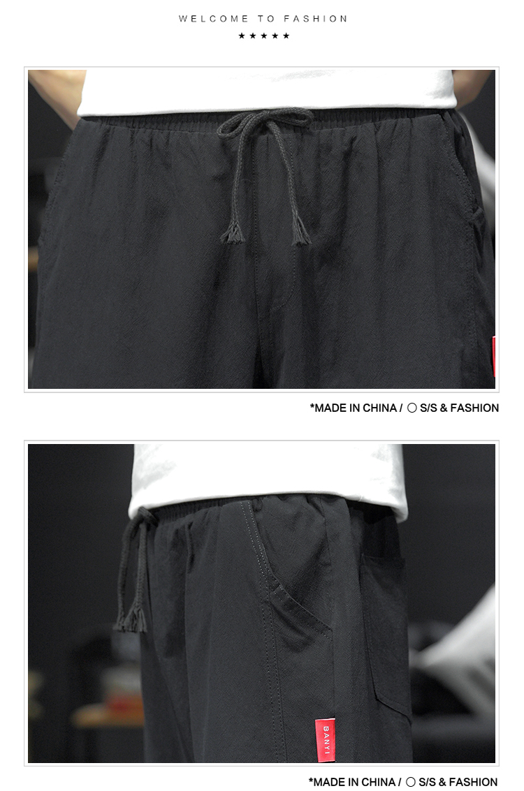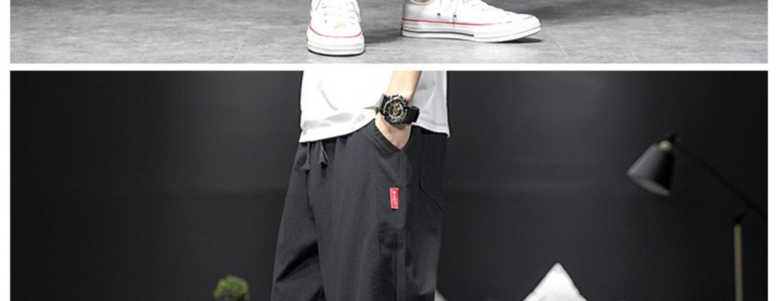 日系小腳工裝褲子男款夏季薄款潮牌寬松休閑褲闊腿男士九分褲大碼