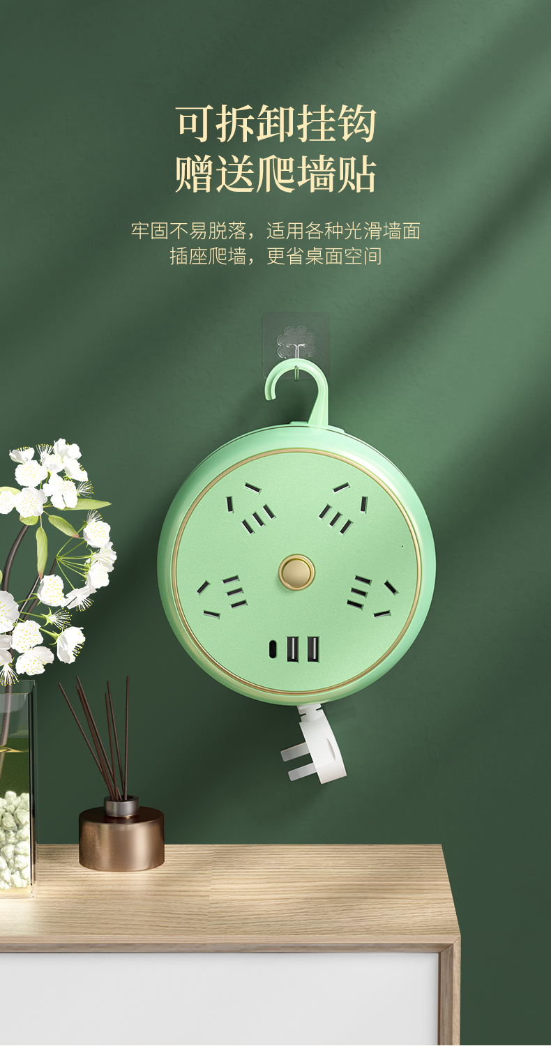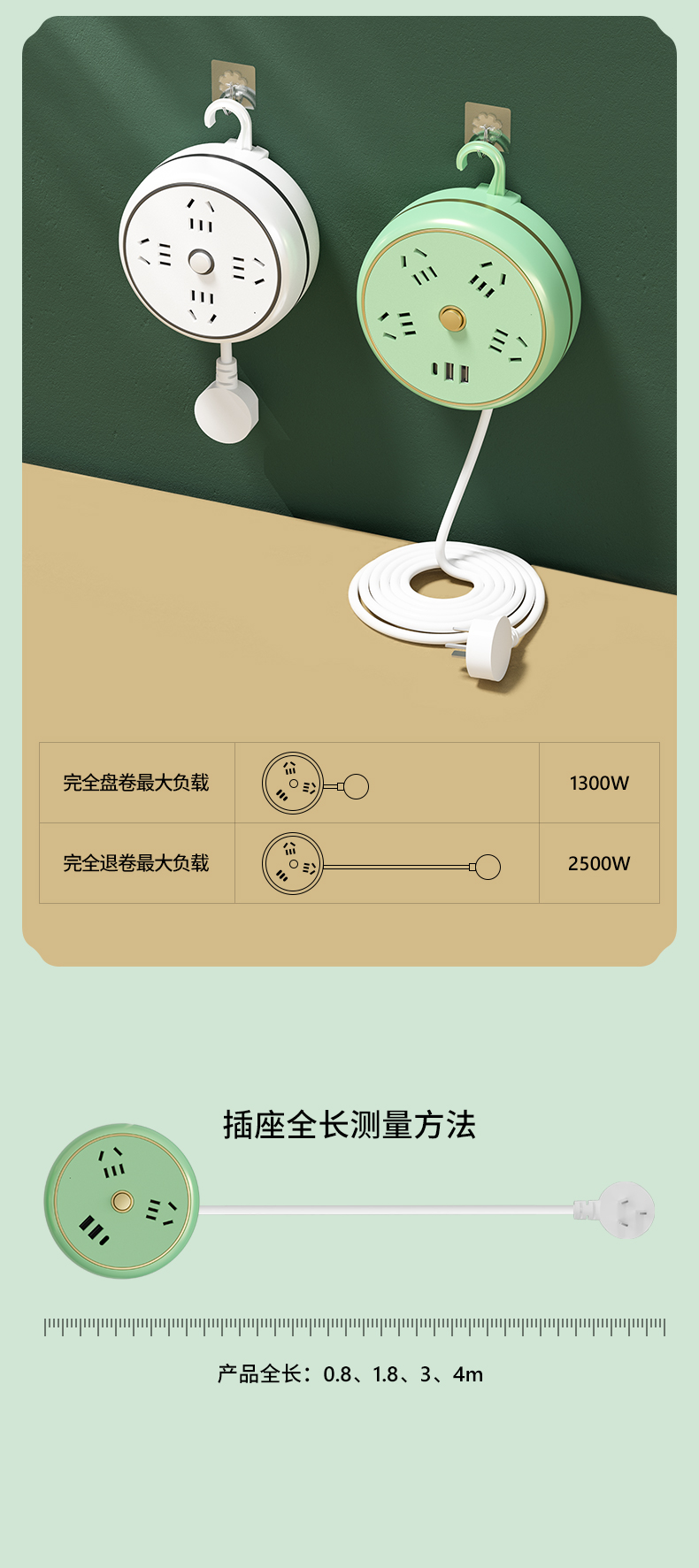 可收納插排家用學生宿舍辦公帶長線USB插線板爬墻多功能插座插板