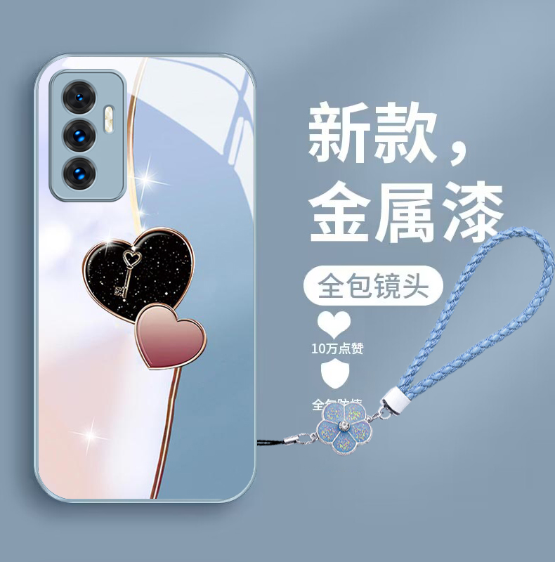 vivos10e手機殼V2130A愛心鑰匙vivis十E拼接撞色金屬漆男女高端鏡面創意防摔網紅潮牌男時尚超薄潮全包女