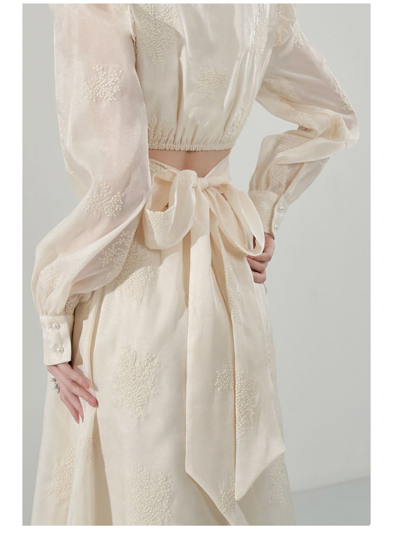 韓語琳秋季白色長袖連衣裙女2023新款高級感法式氣質溫柔春秋裙子