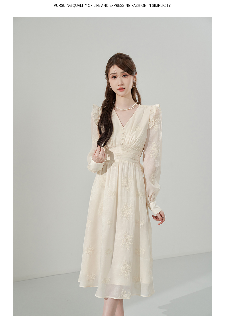 韓語琳法式連衣裙女2023新款春秋氣質收腰顯瘦高級感長袖v領裙子