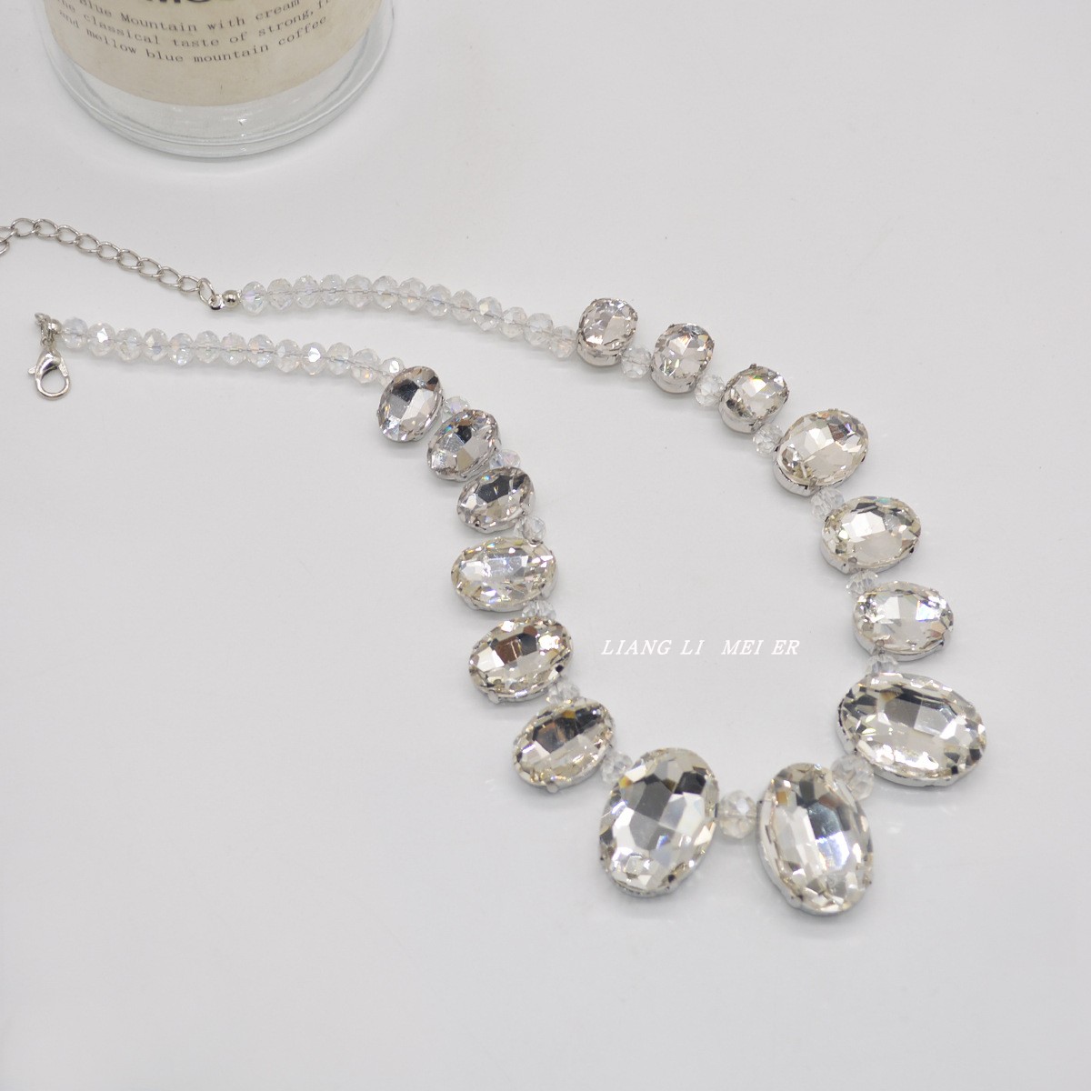 夸張大水晶鎖骨鏈女輕奢高級感拼接短款水鉆禮服choker頸鏈配飾
