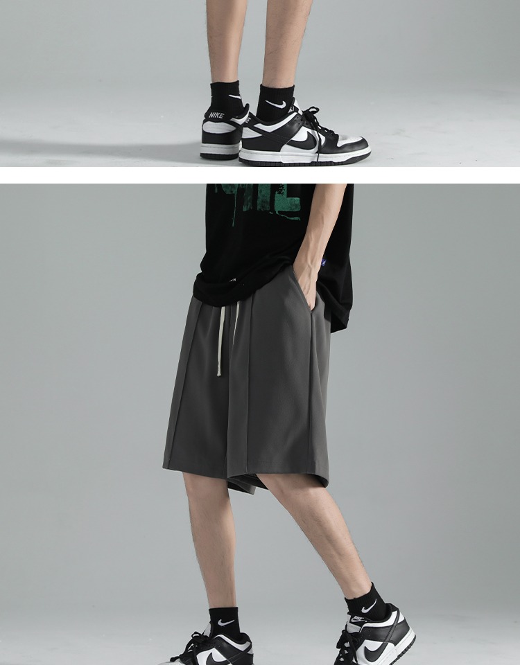 冰絲西裝短褲潮牌男夏薄款cleanfit垂墜感高級感休閑運動5分褲子