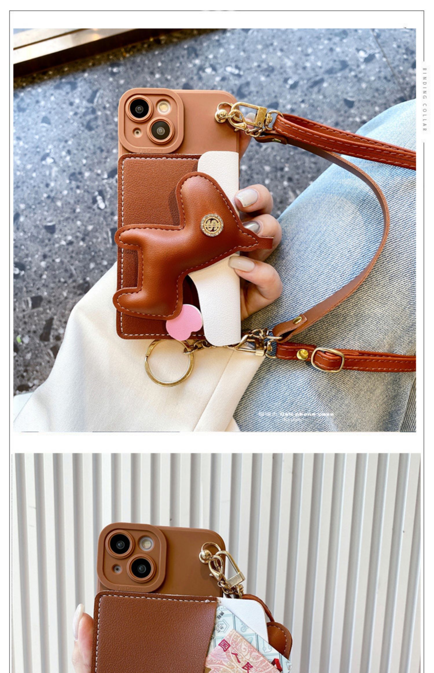 棕色小馬零錢包適用opporeno10手機殼renp9/8/7pro斜挎reno6掛繩5k背帶A97掛鏈A58女款A1X皮質findx6/3防摔套