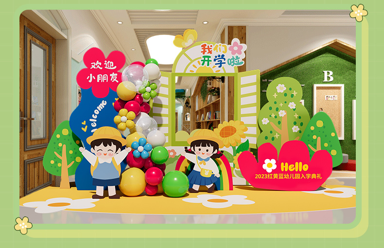 小學幼兒園開學典禮裝飾場景布置迎新展板活動氣球背景墻kt板