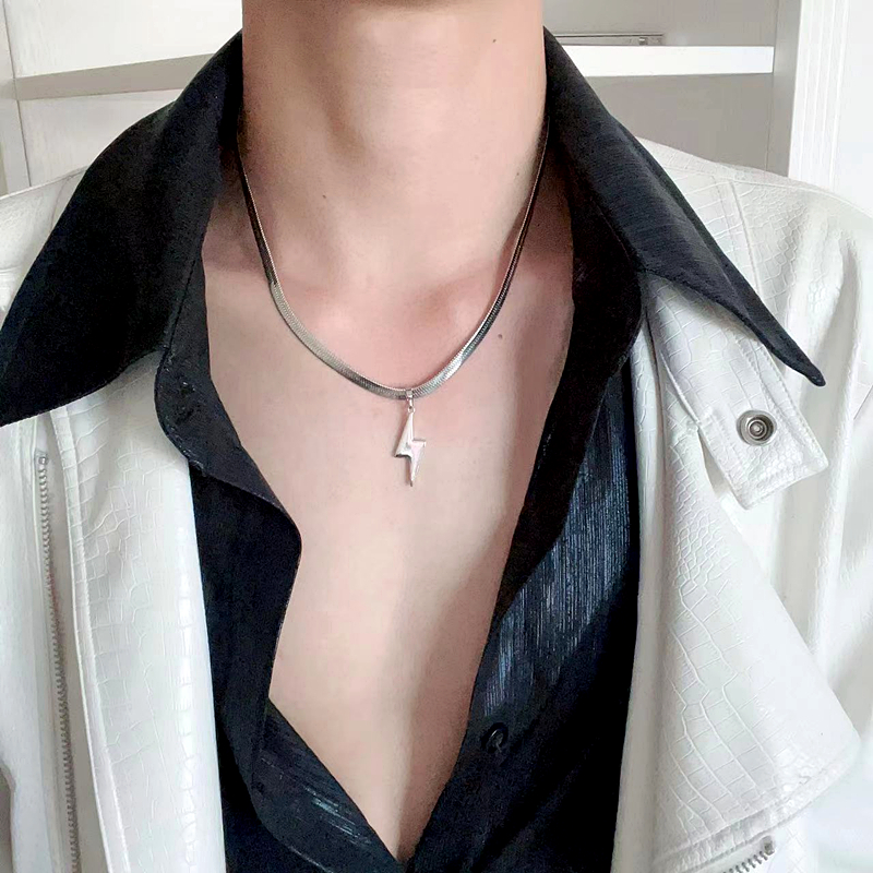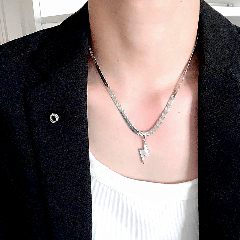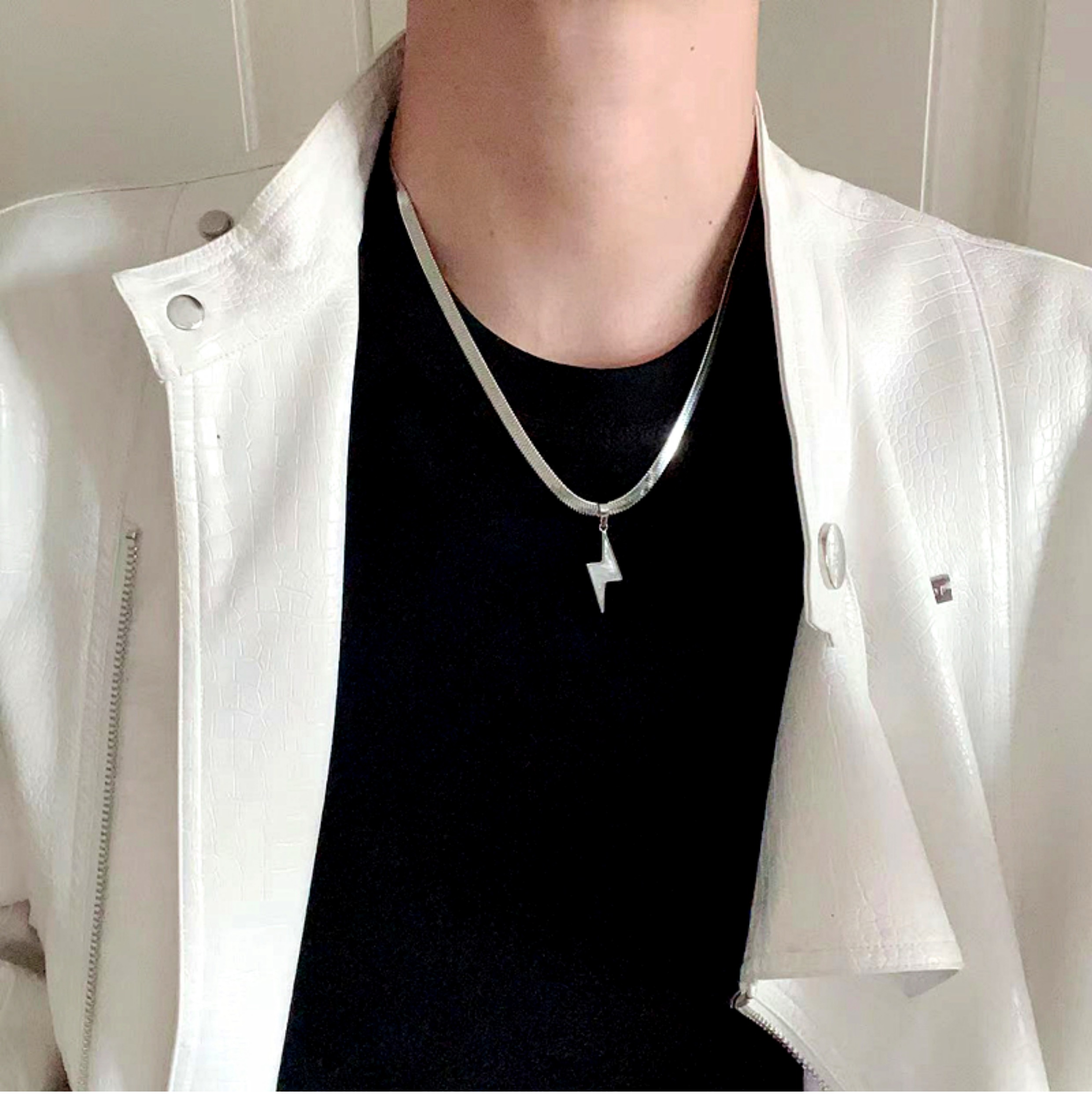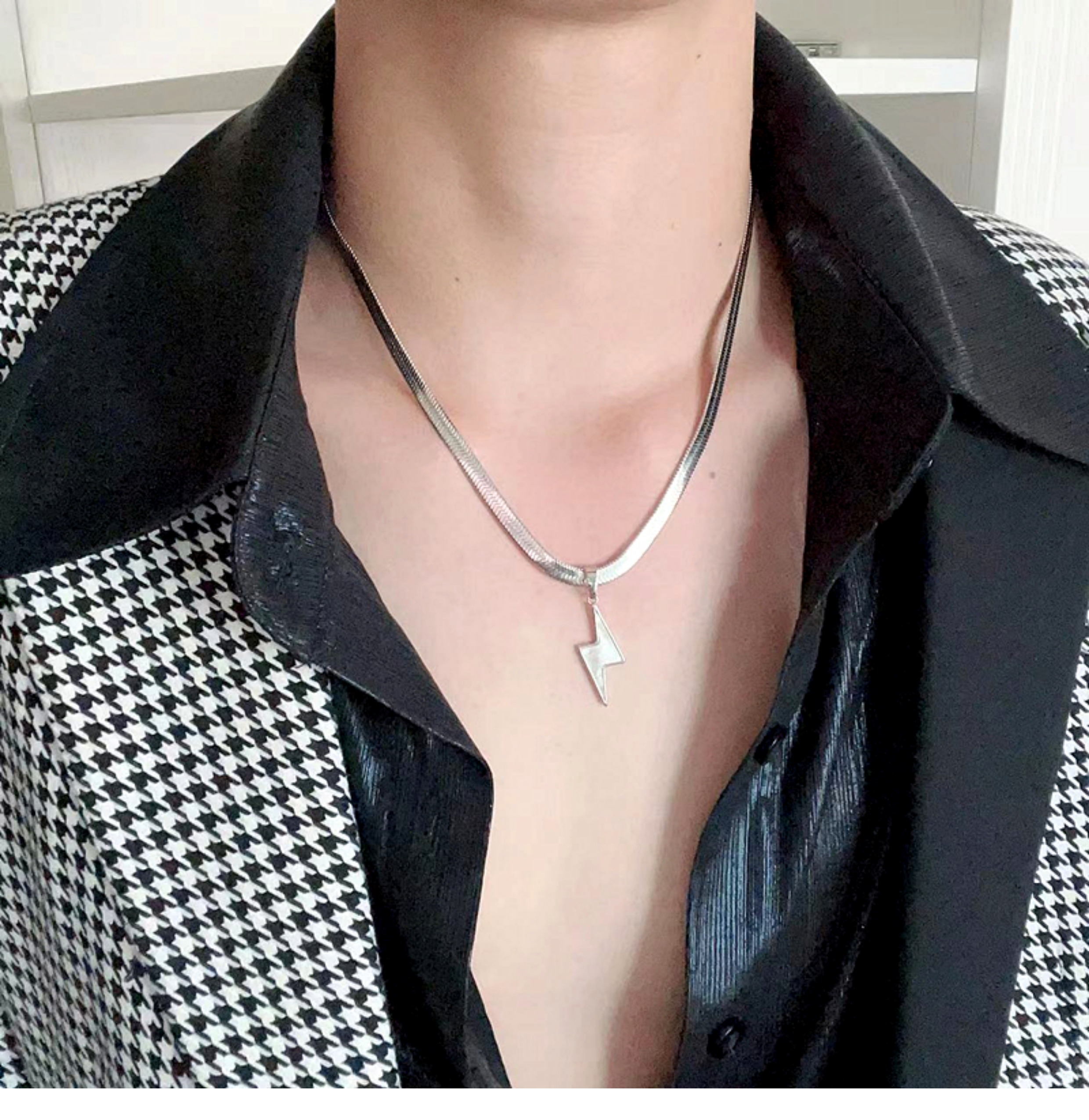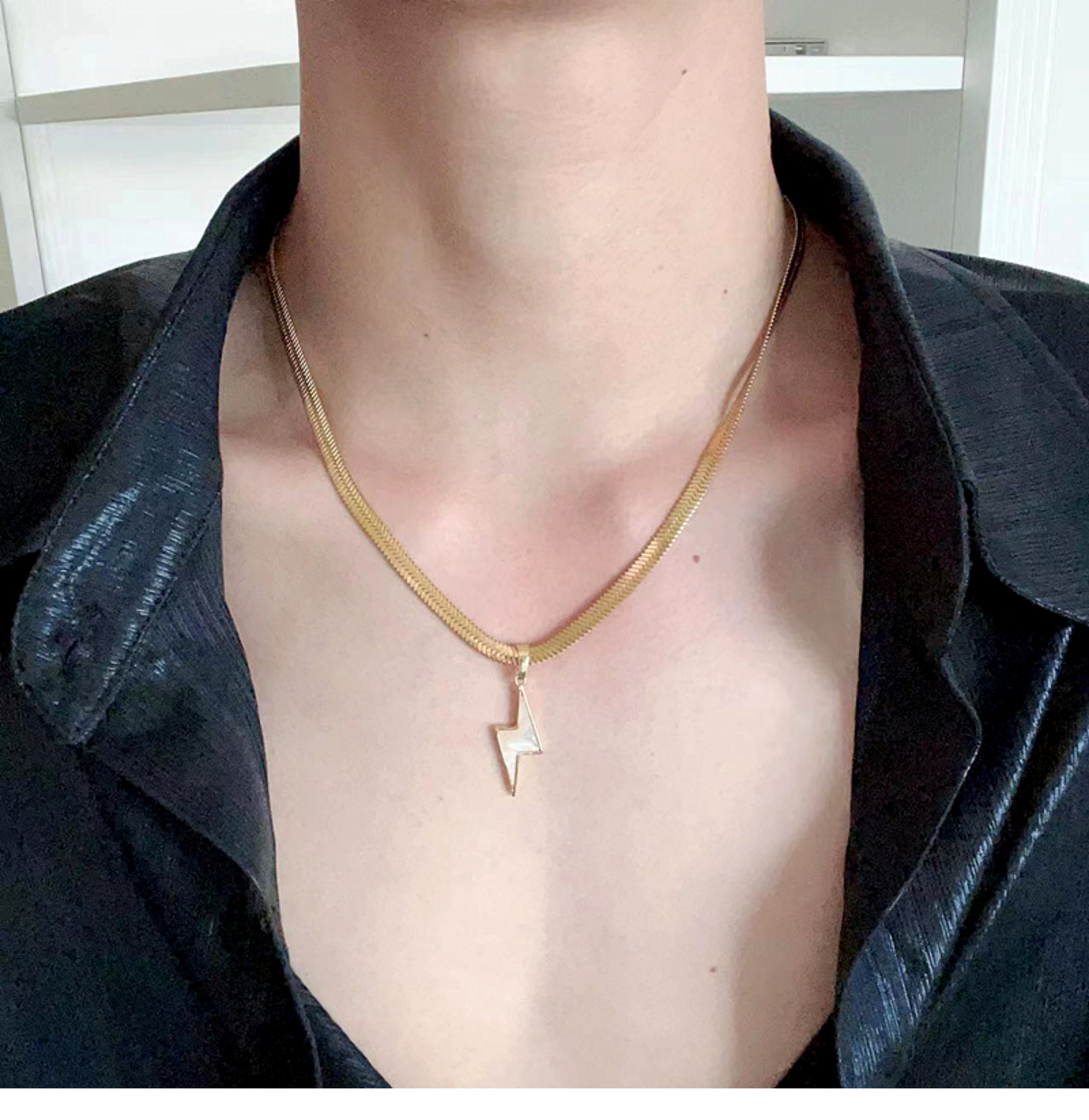 原創小眾白貝母閃電吊墜鈦鋼蛇骨鏈項鏈男簡約潮流高級感鎖骨鏈女