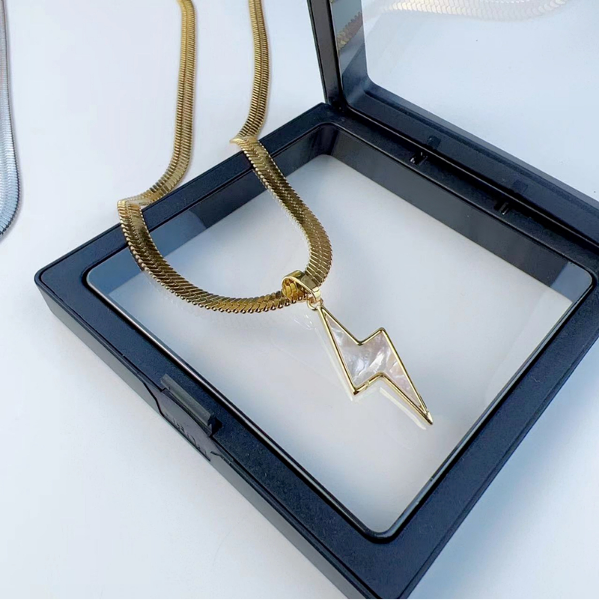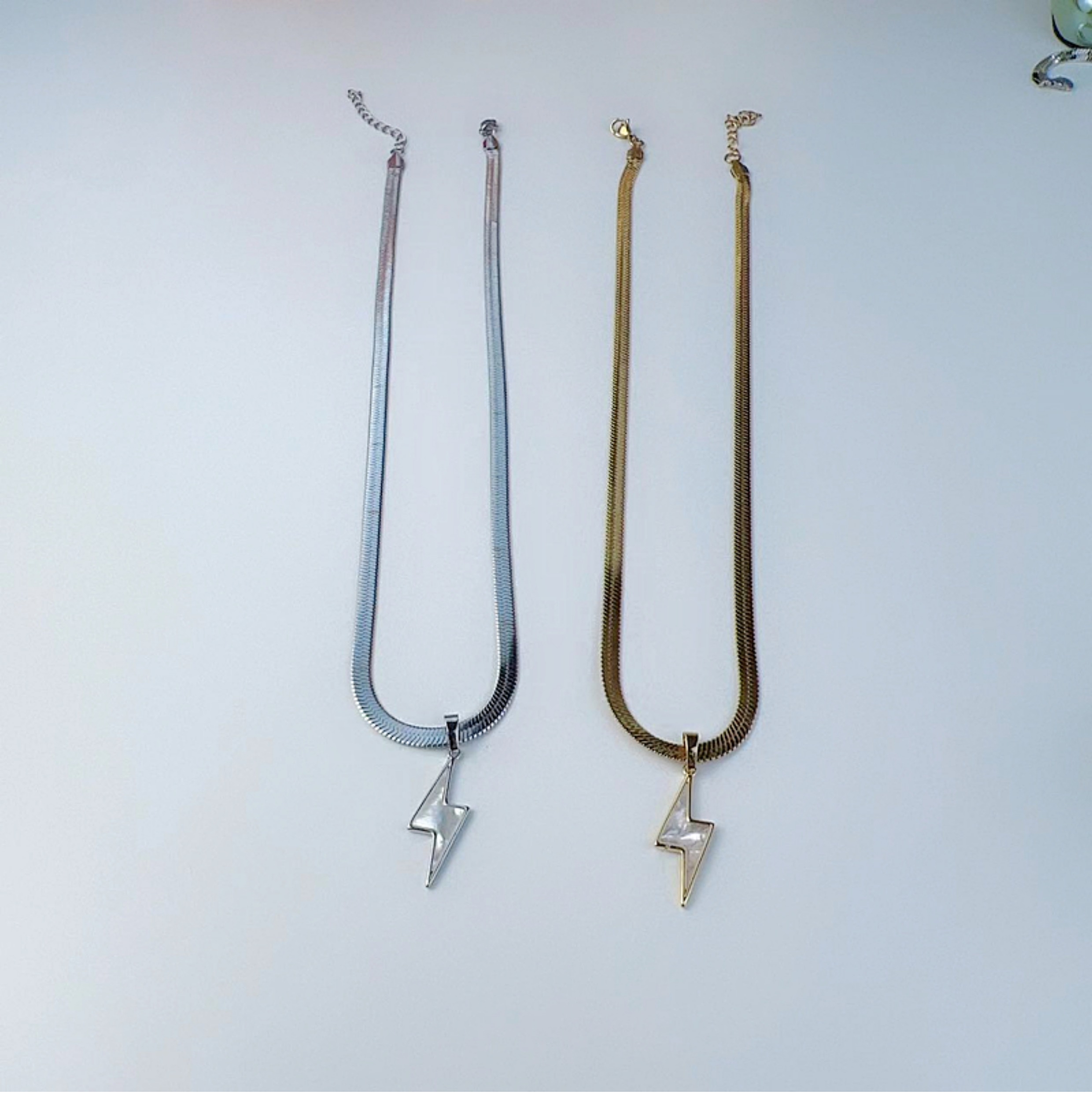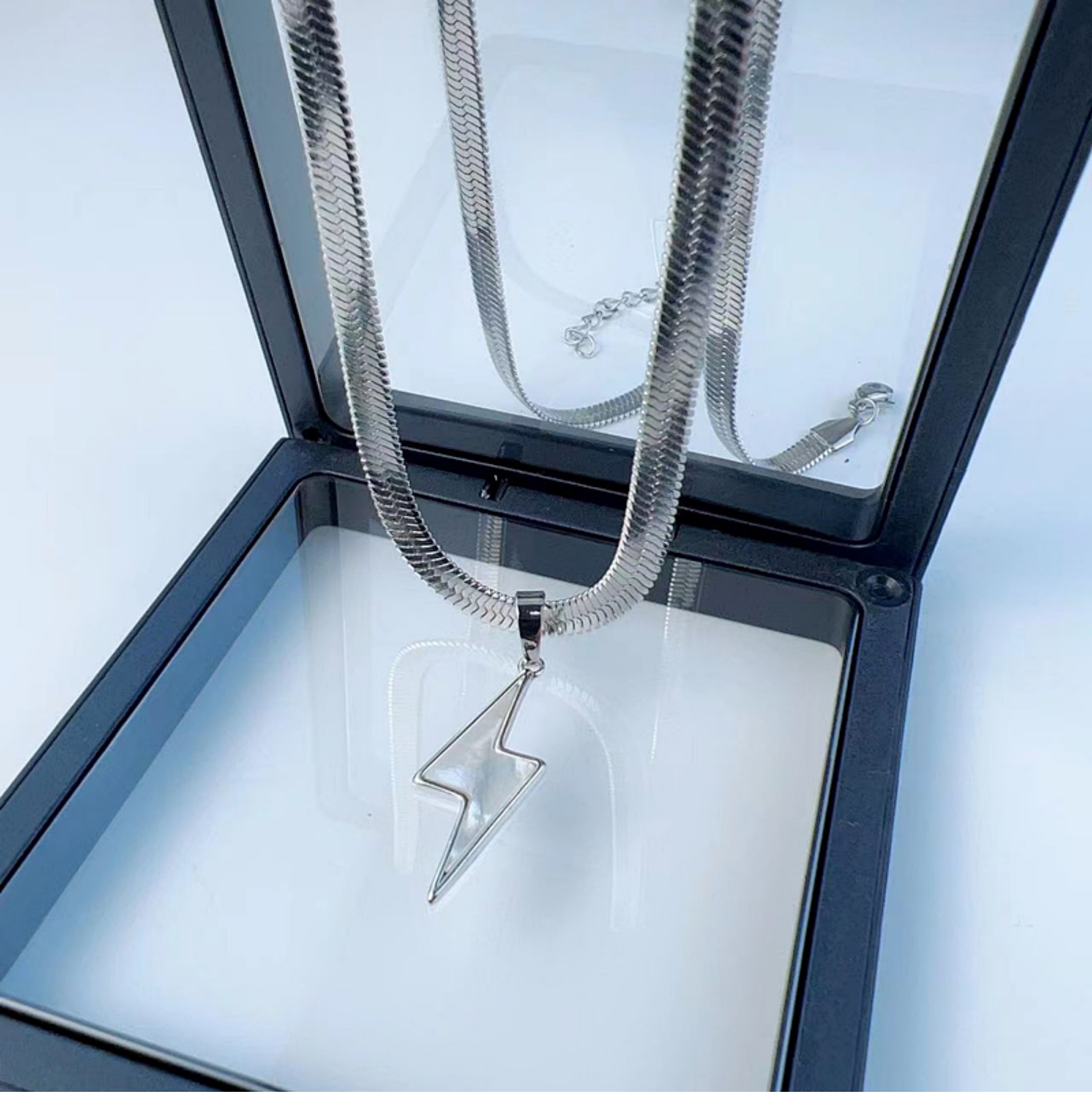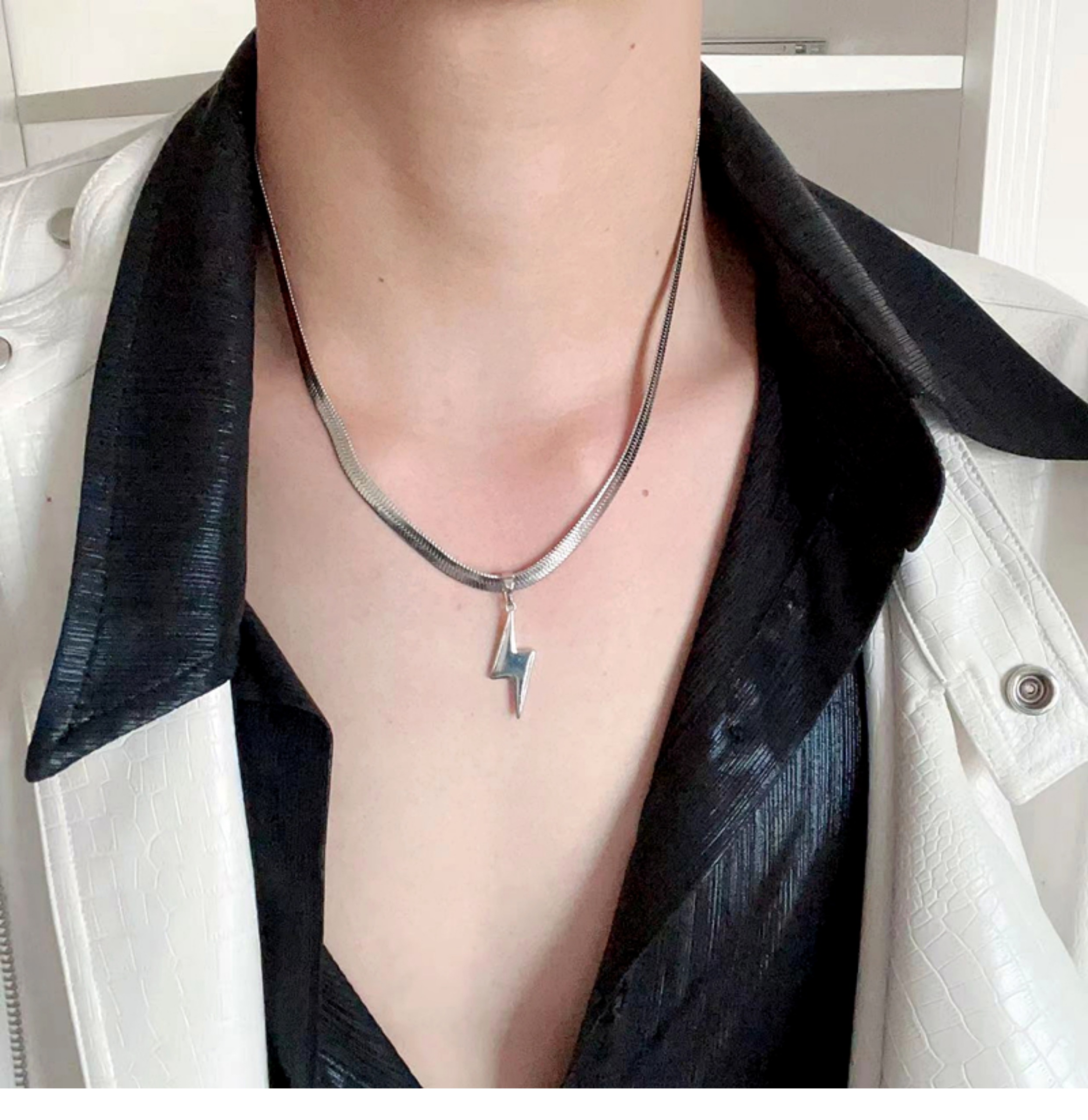 原創小眾白貝母閃電吊墜鈦鋼蛇骨鏈項鏈男簡約潮流高級感鎖骨鏈女