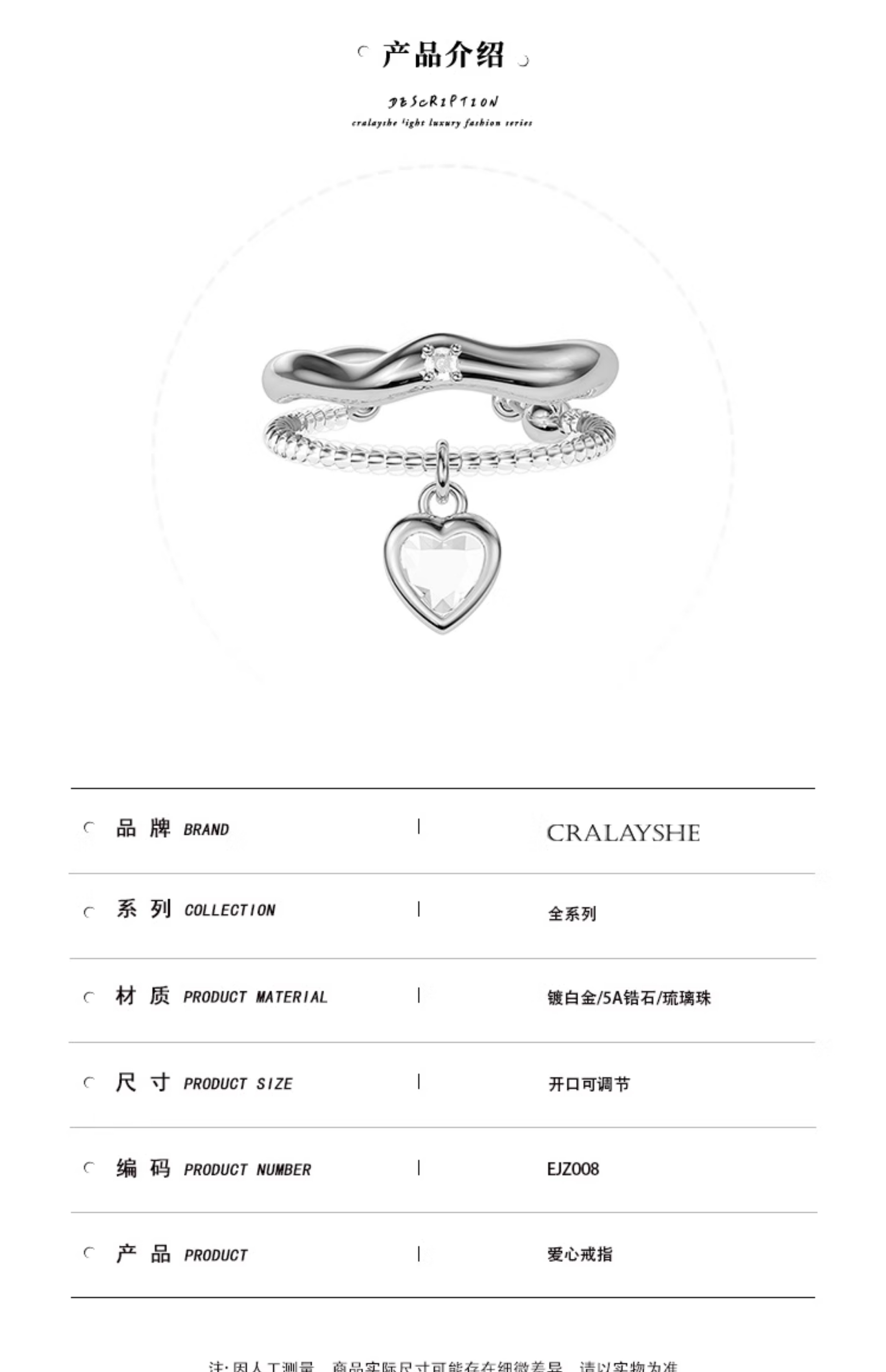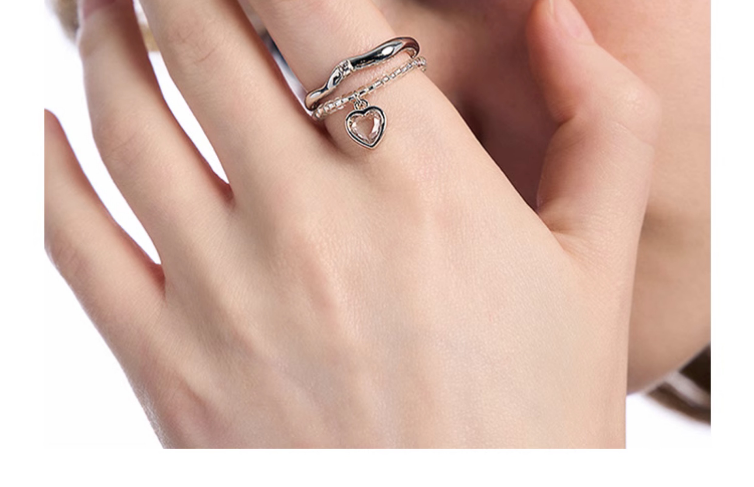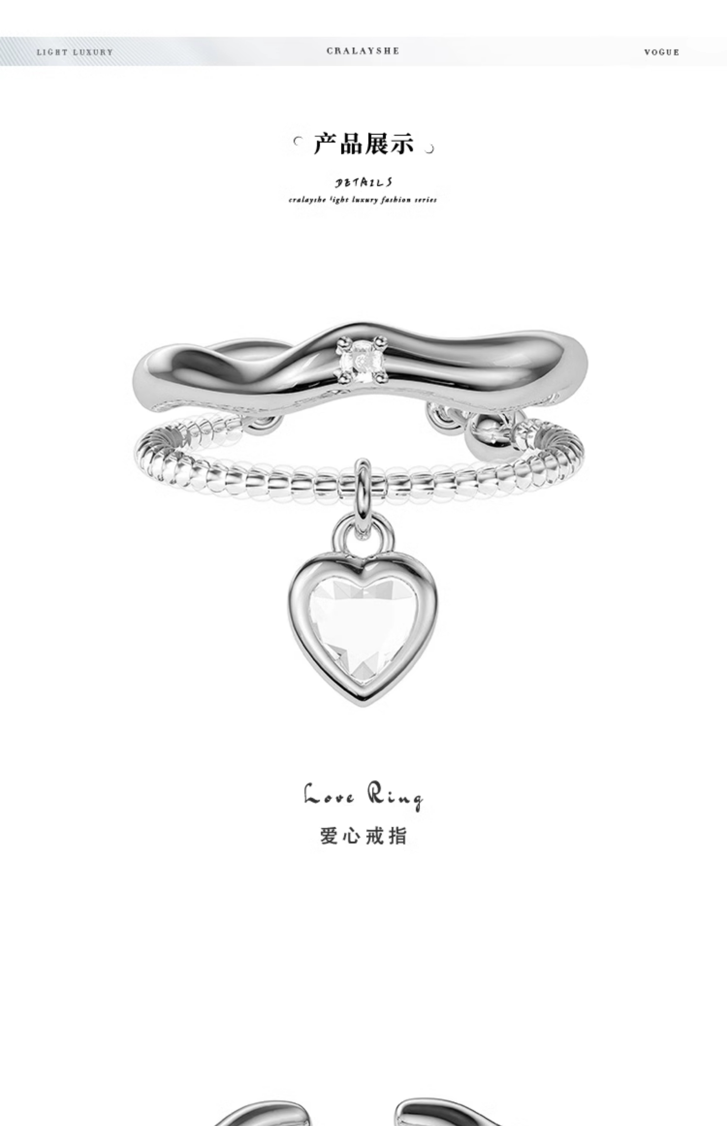 彌漫戒指愛心女甜美通勤飾品首飾百搭高級感原創設計七夕節送禮物