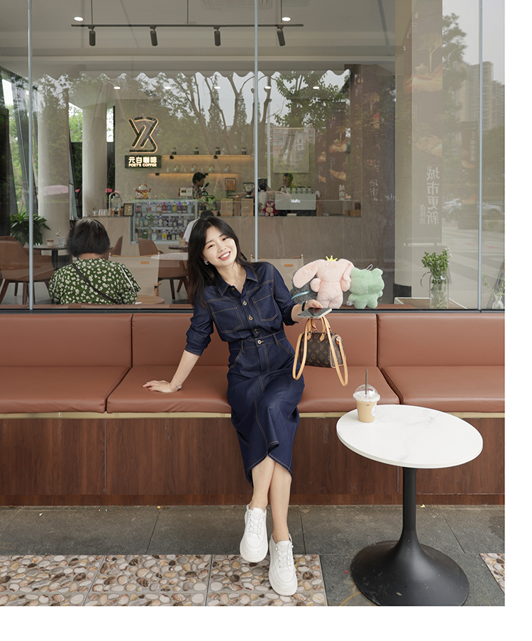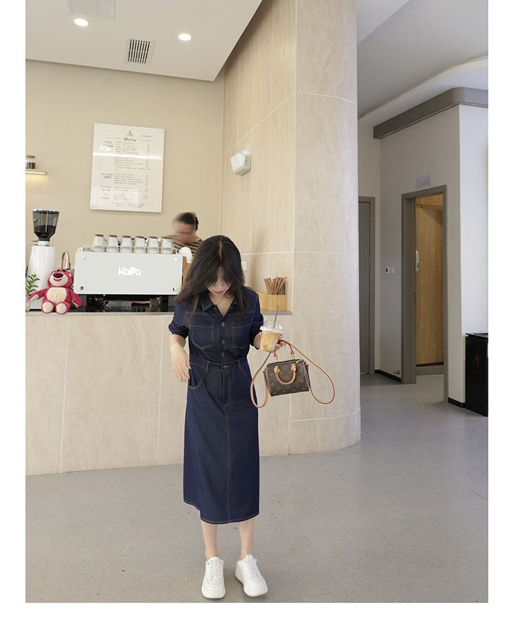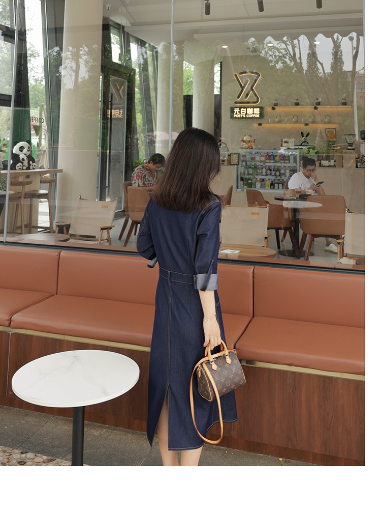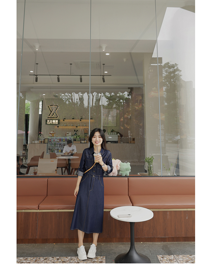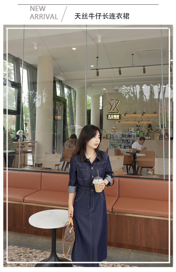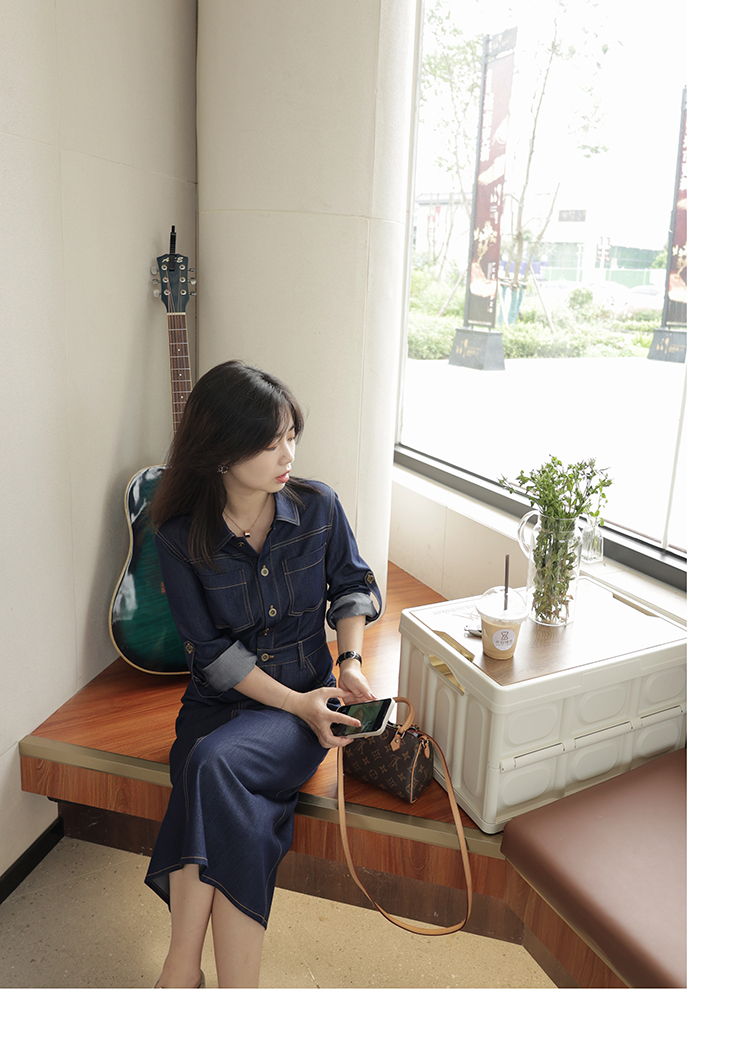 爾爾制小個子女春夏仿牛仔氣質長袖連衣裙薄2023年夏休閑通勤顯瘦