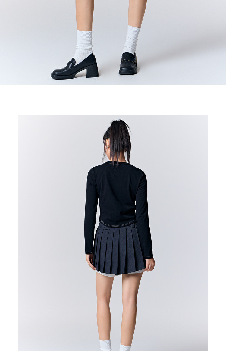森馬長袖T恤女修身顯瘦上衣2023秋季新款撞色插肩袖小個子套頭衫